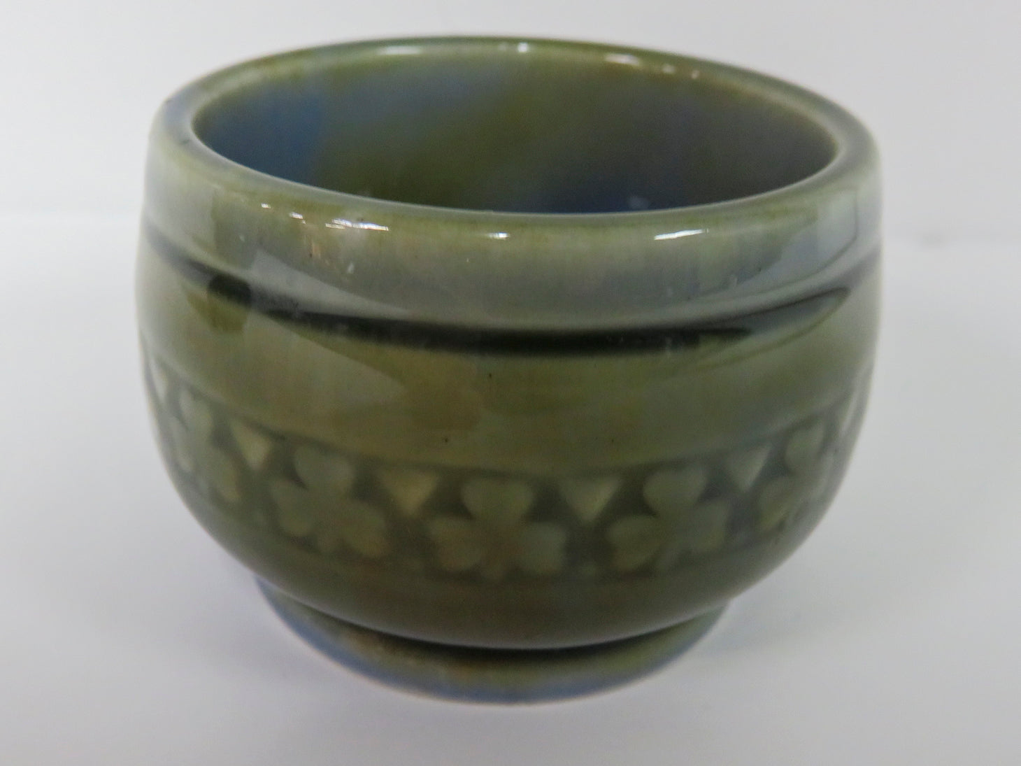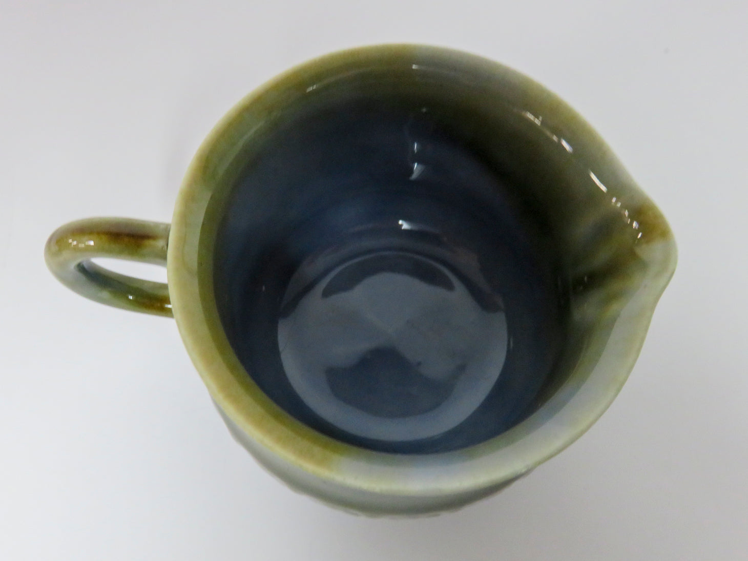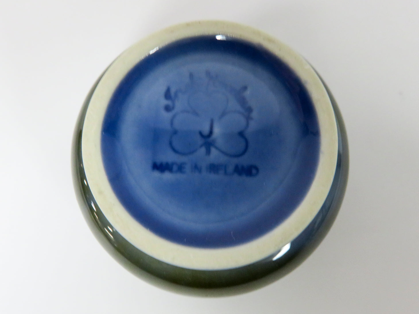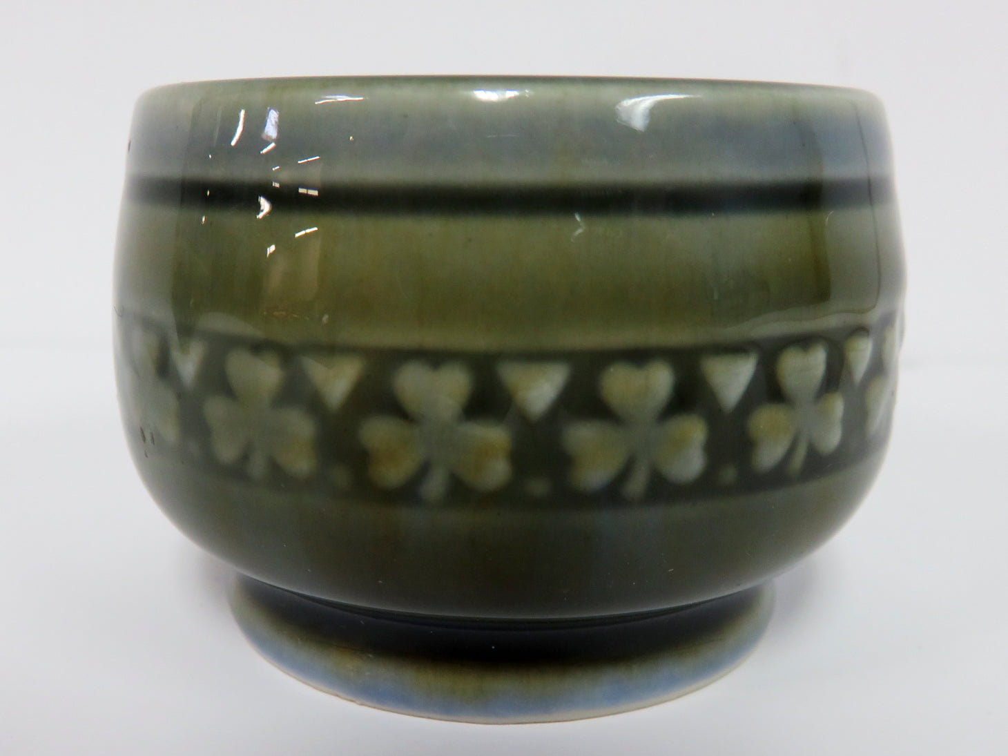 Item Number: 8936-518 Wade Irish Porcelain cream and open sugar. Mottled blue and green glaze and center band of shamrocks. 2.5" x 2" H