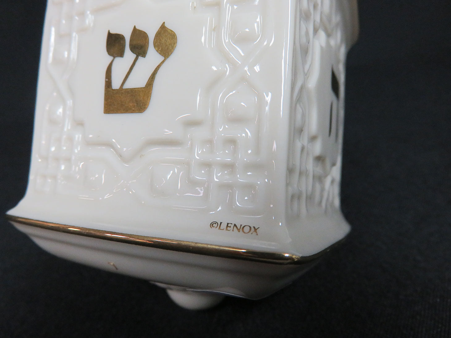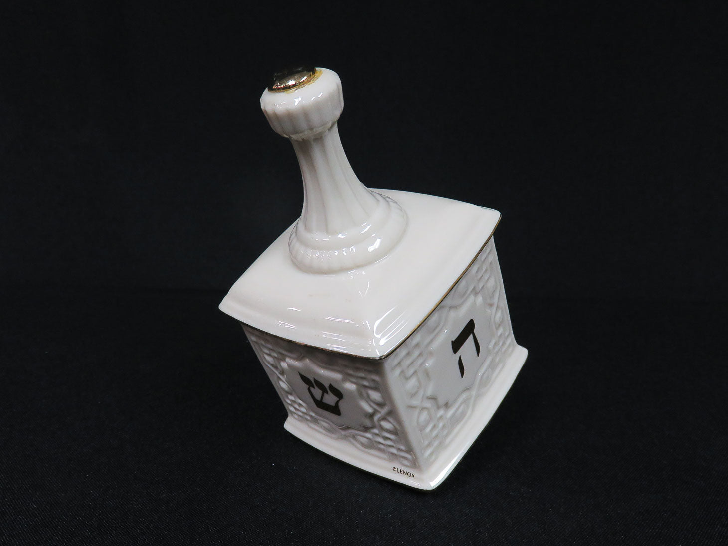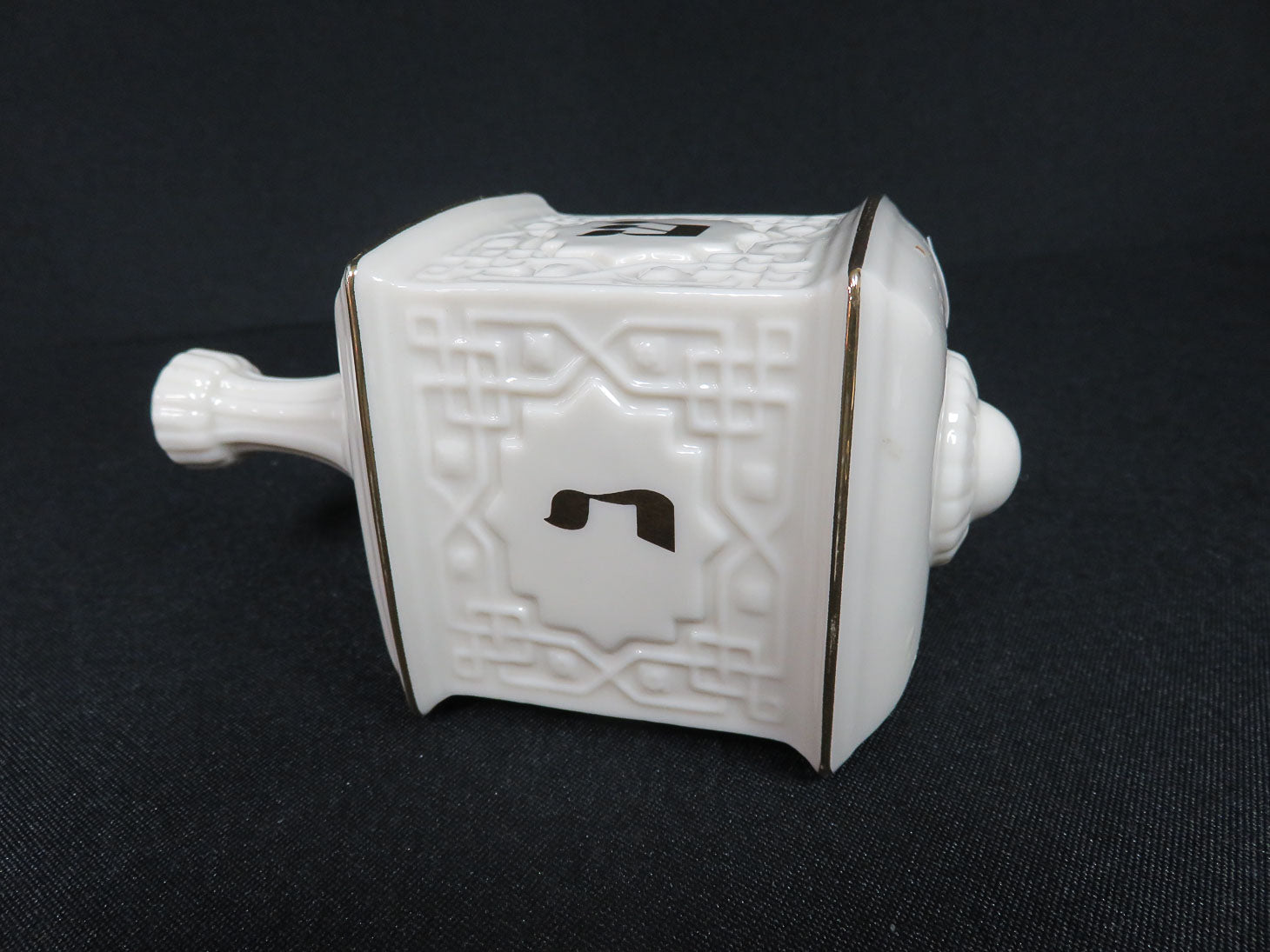 Dreidel, cream with gold trim and Hebrew lettering