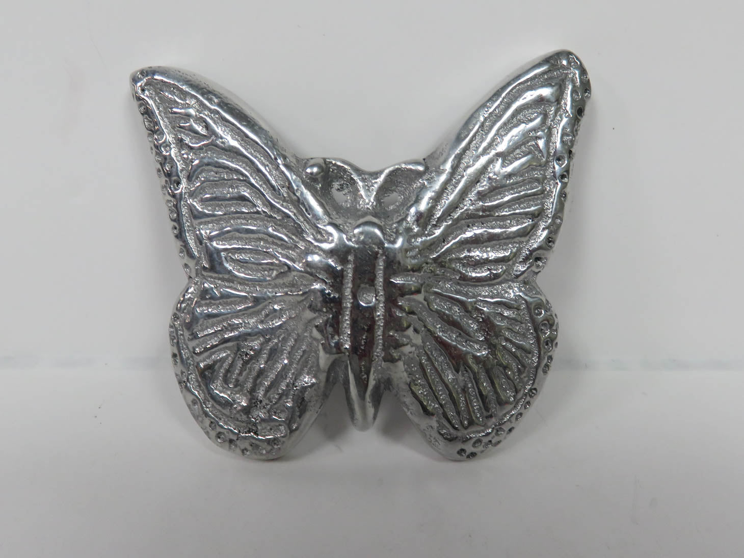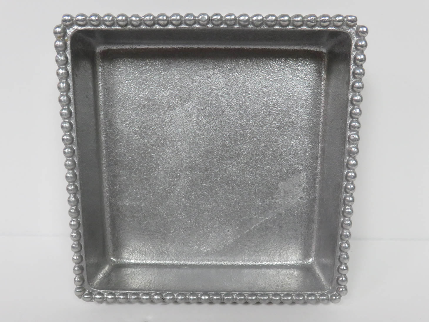 Square cocktail napkin holder with beaded trim with butterfly weight