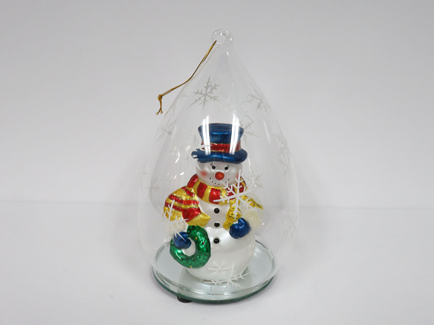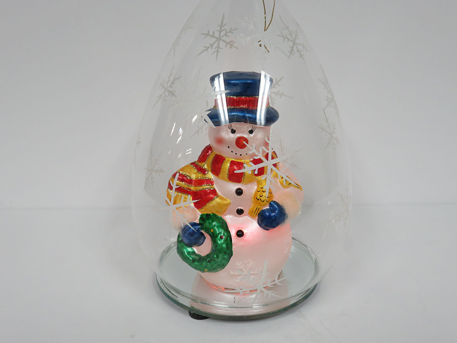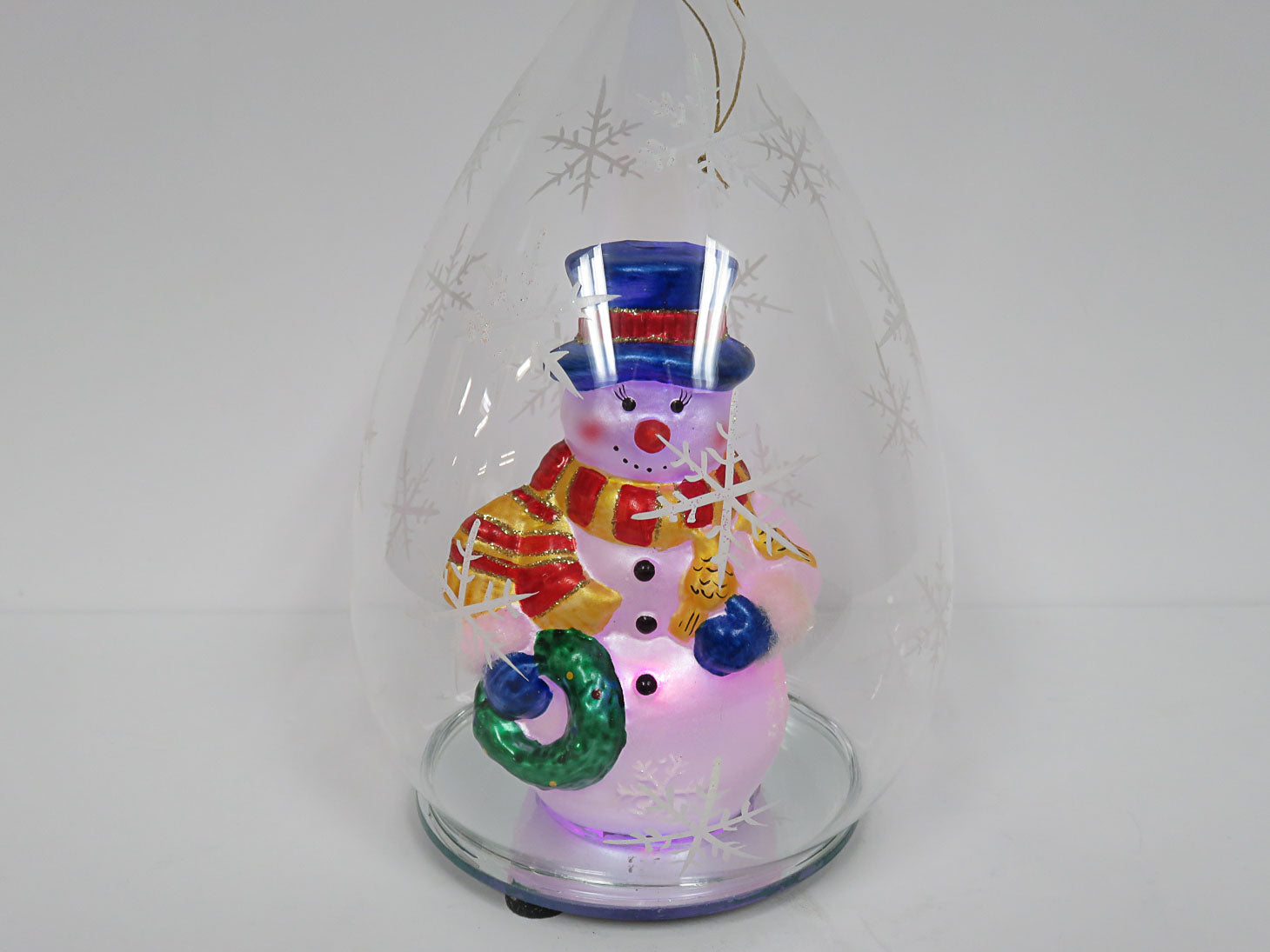 Glass snowman inside a clear globe with color changing LED lights. Tested.