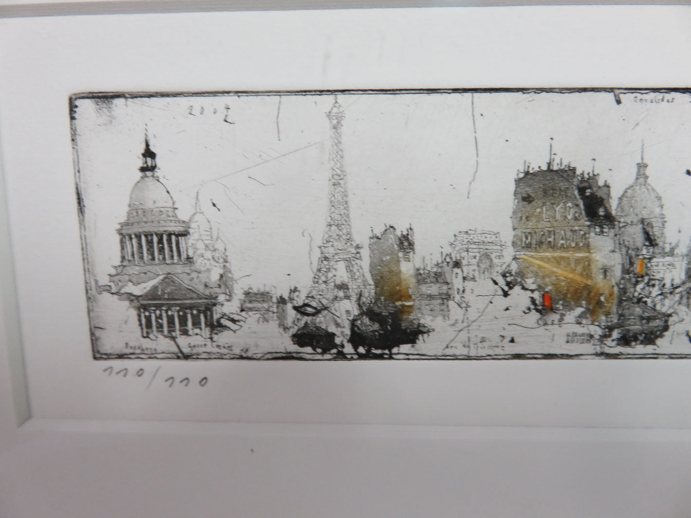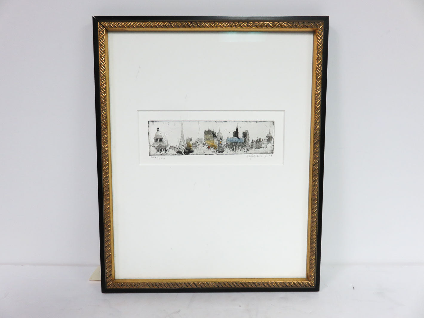 Item Number: 28818-31 Limited edition, 770/770, print of Paris landmarks, 2004, in black and gold frame 10.5" x 12.5"