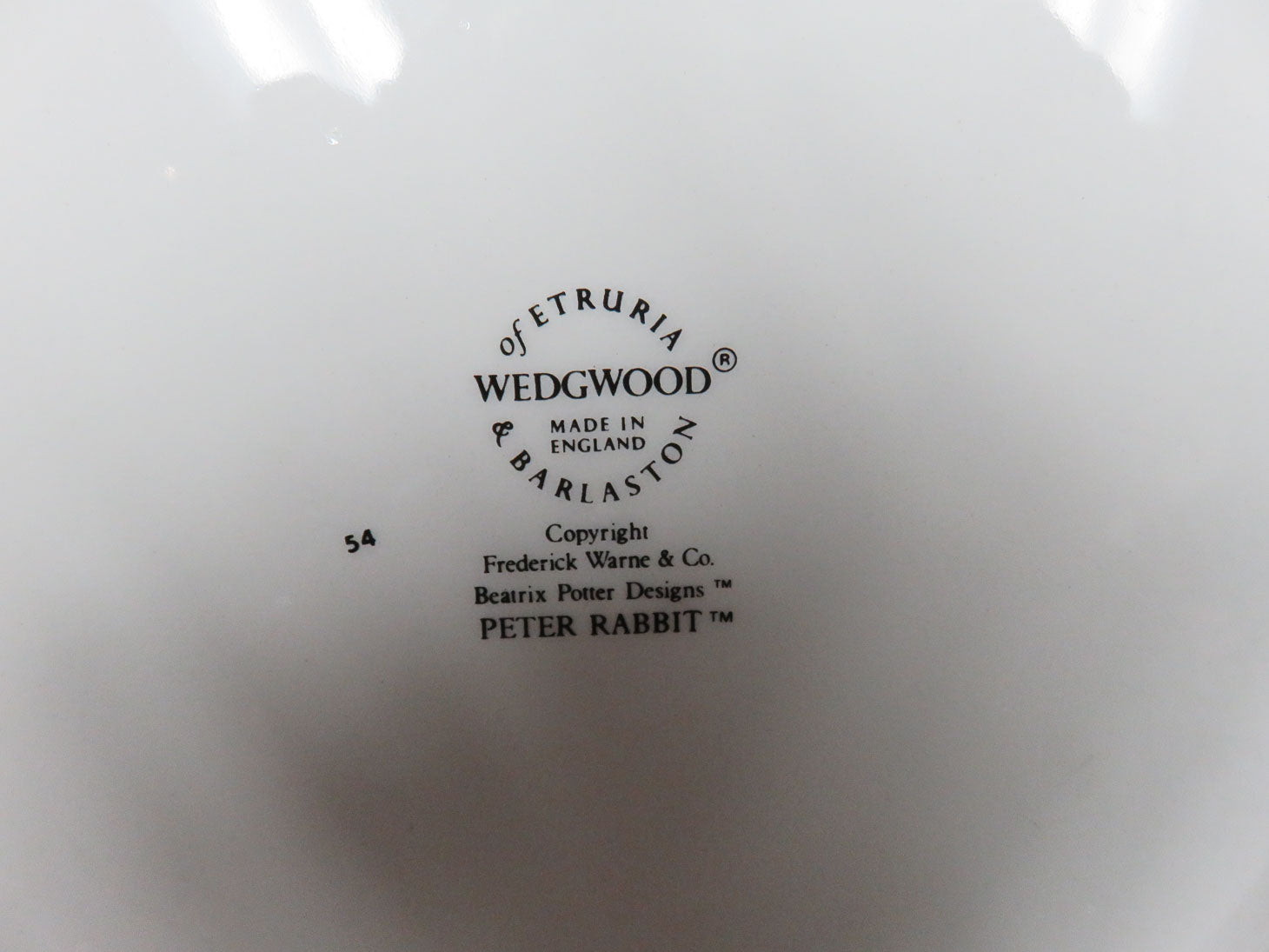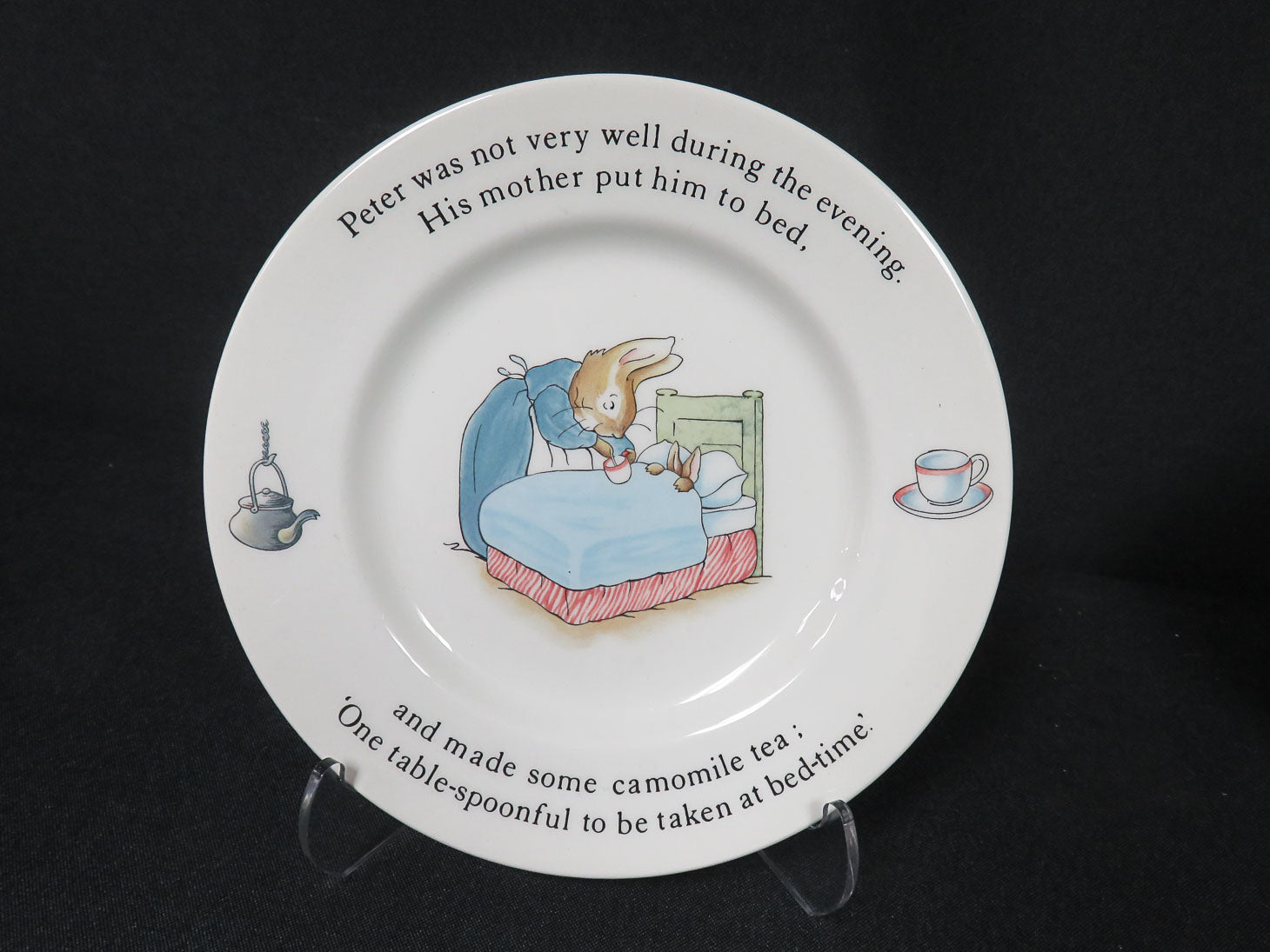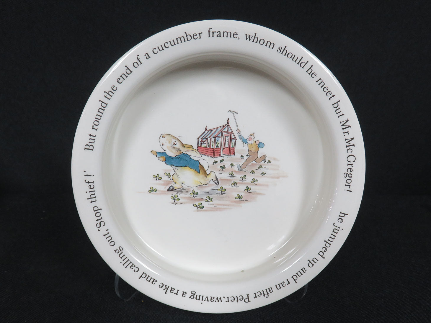Item Number: 17036-10 Peter Rabbit, 3-piece Mr. McGregor dish set: plate, porringer and cup. plate 6.75"D