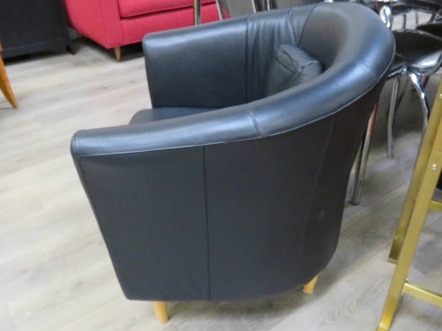 Black Leather Barrel Chair