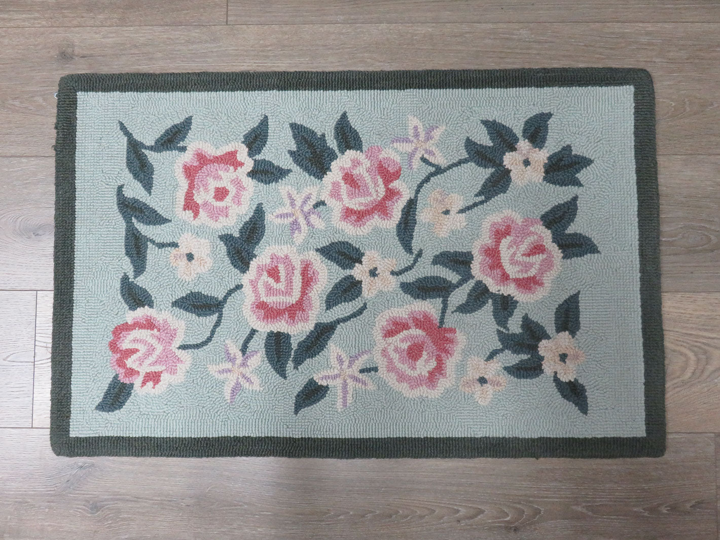Item Number: 9992-7220 Sage green border with light green background; pink rose design. Two available. Sold separately. #9992-7219. 21" x 33"