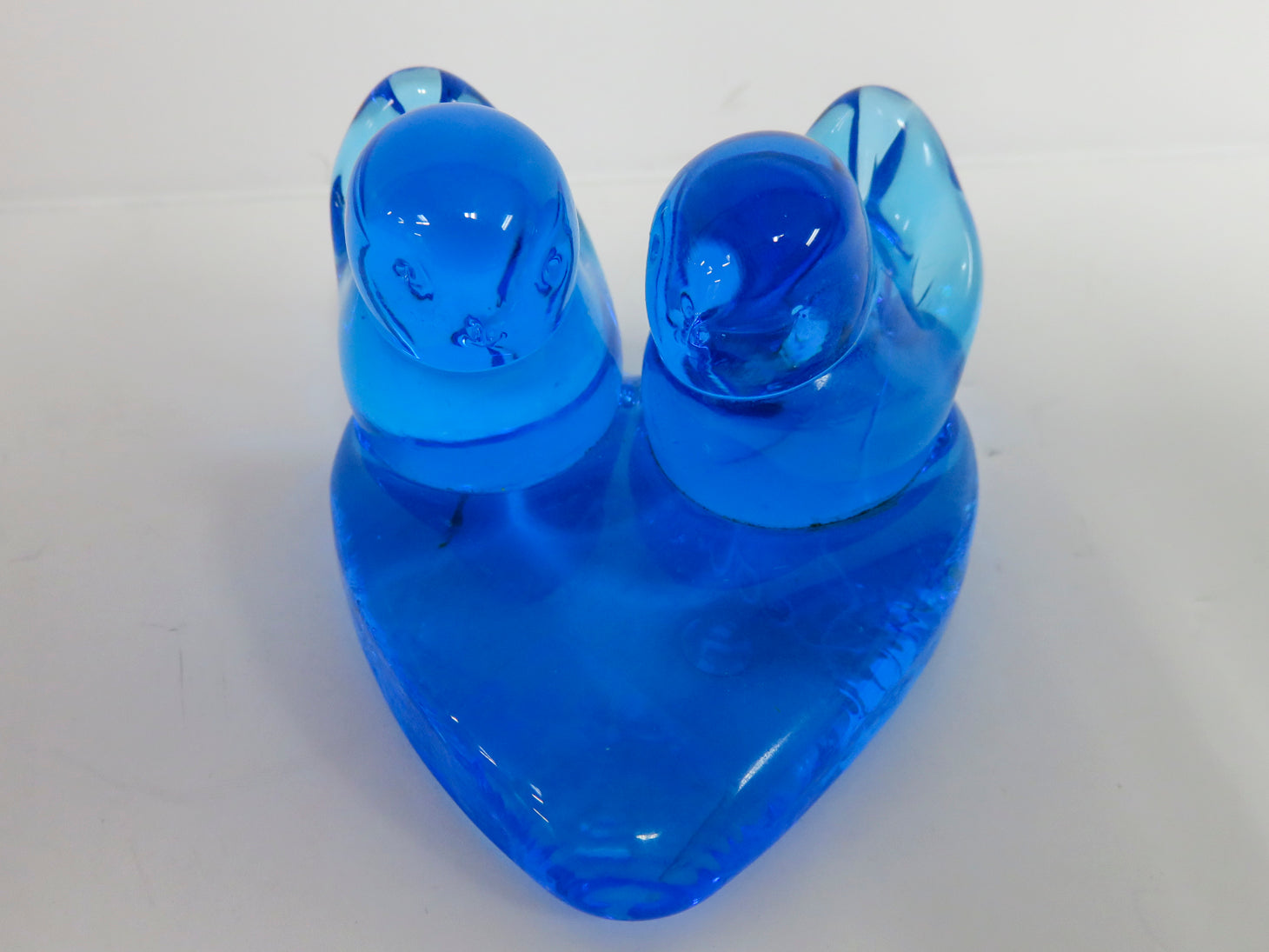 Double "Bluebirds of Love" figurine by Leo Ward. Cobalt blue art glass 2 birds on a heart shaped base