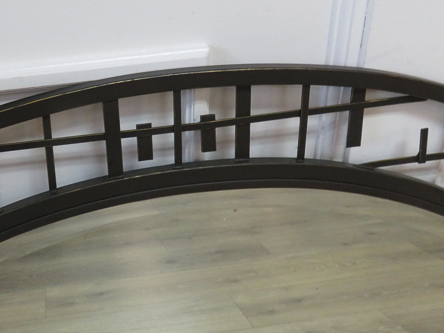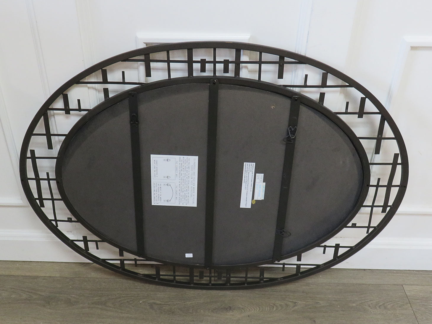 Oval, geometric metal grid overlay design, bronze-toned, vertical or horizontal. 38" x 27.75"