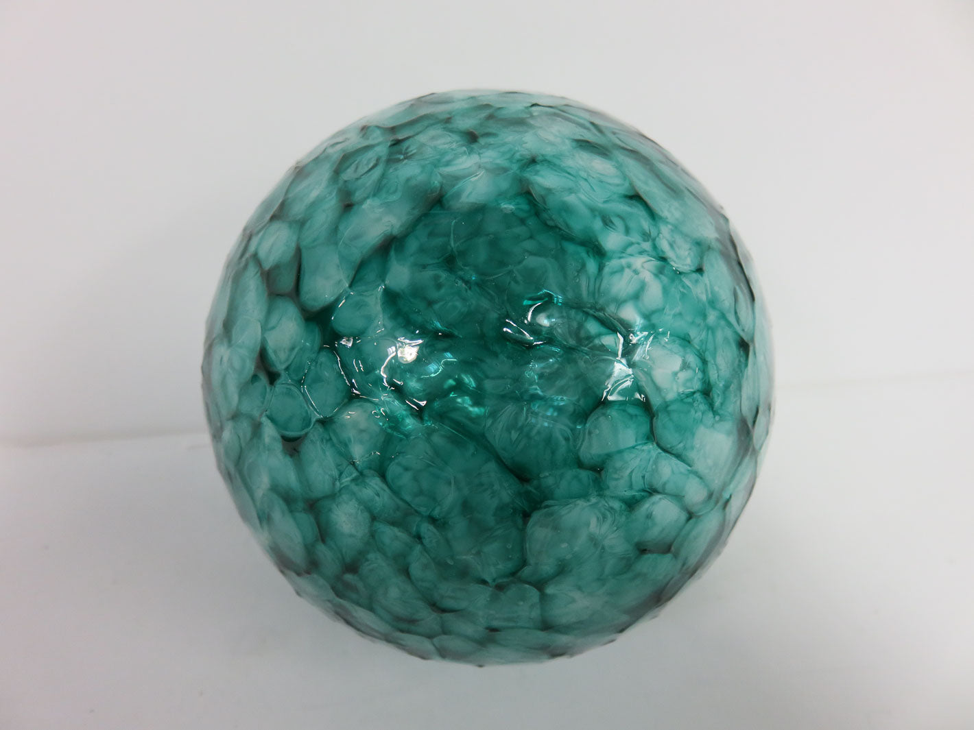 Hand blown, green and clear mottled, can be hung