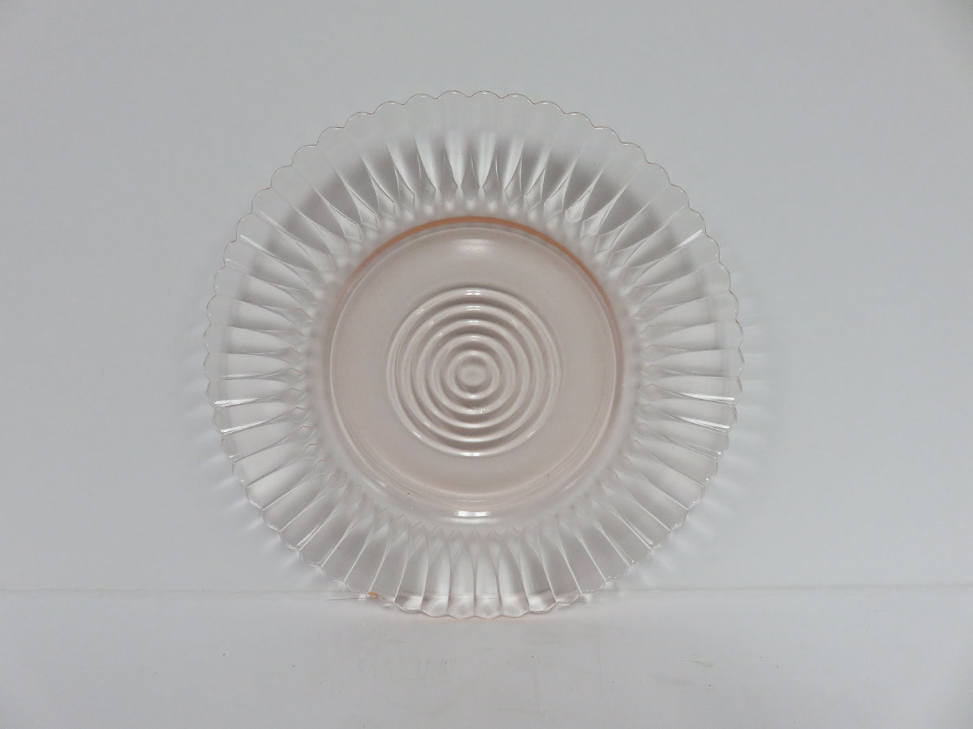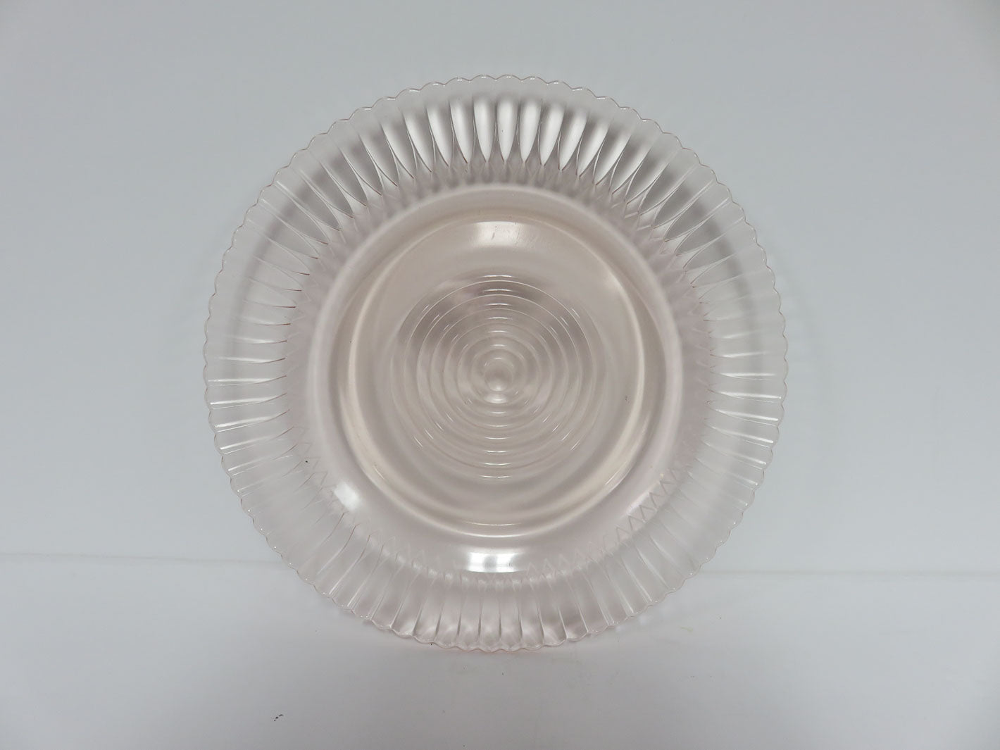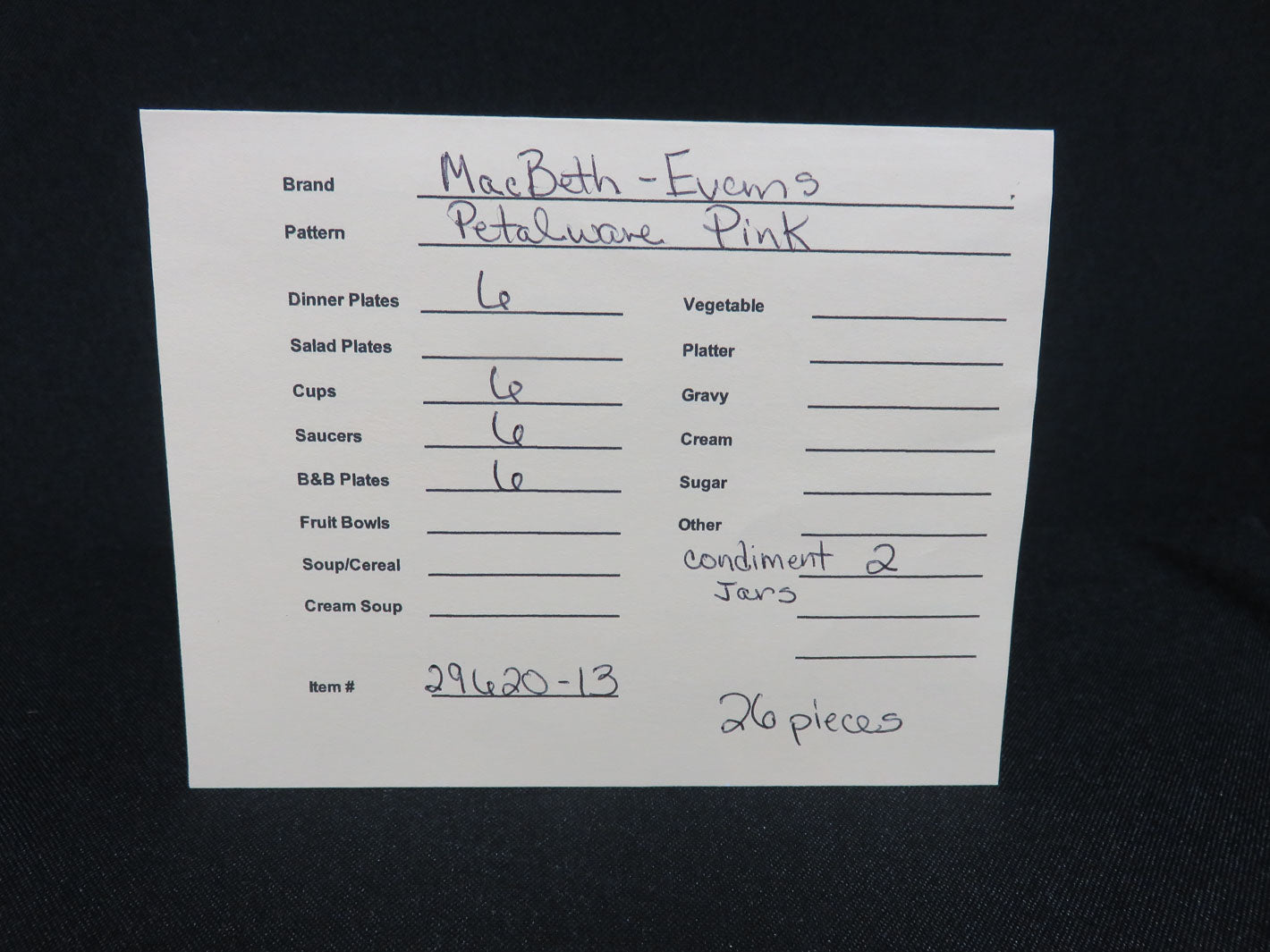 6-4 piece place settings plus 2 condiment jars. Petalware Pink pattern, ribbed design with scalloped edges. Produced in the 1930s.