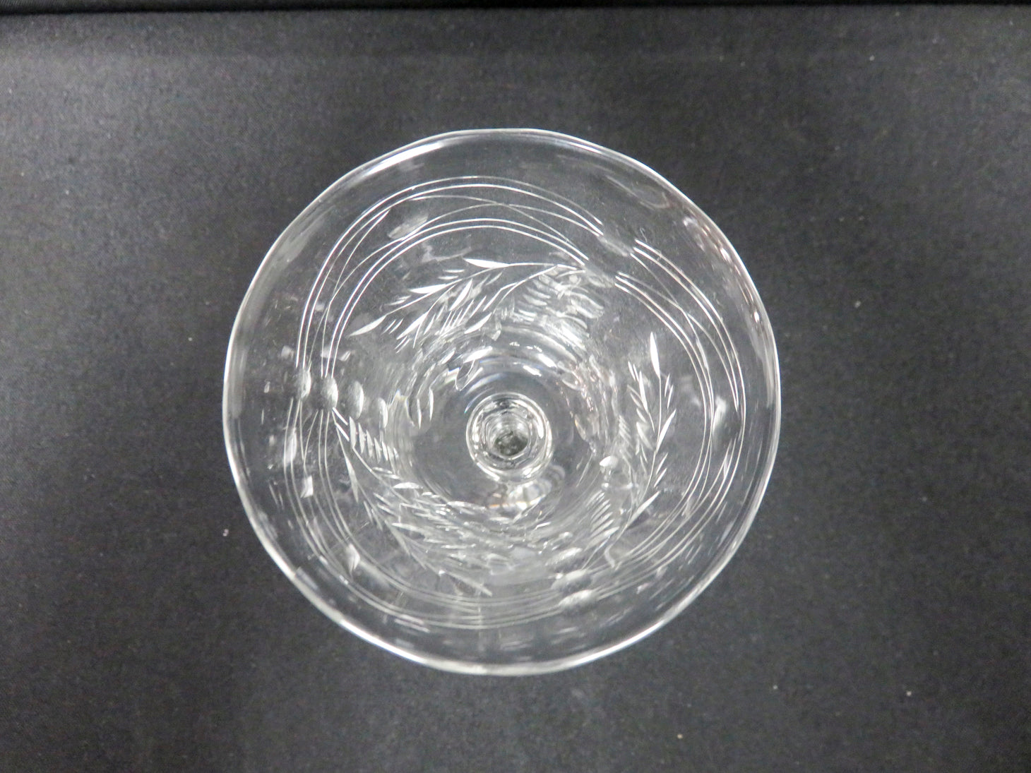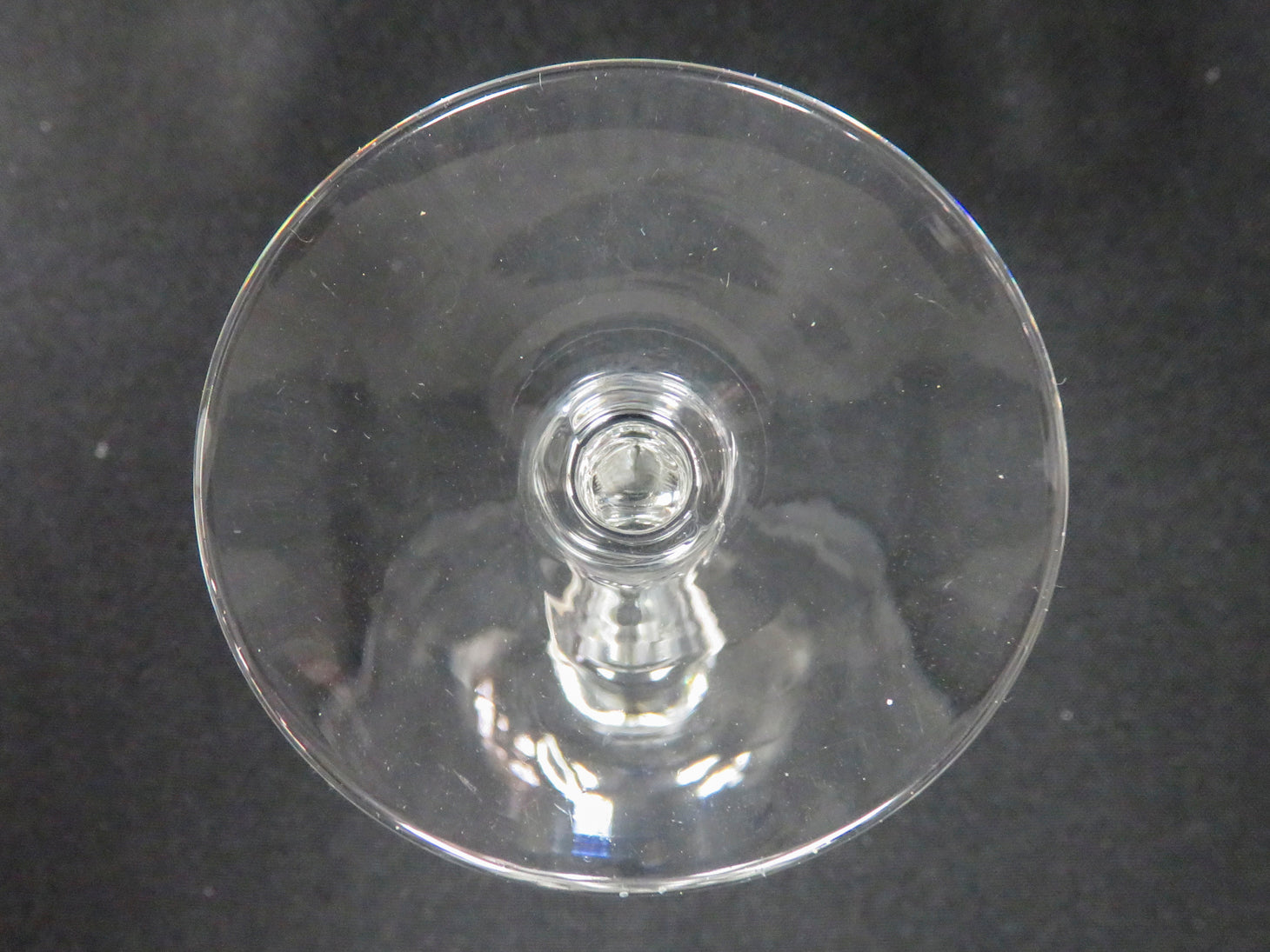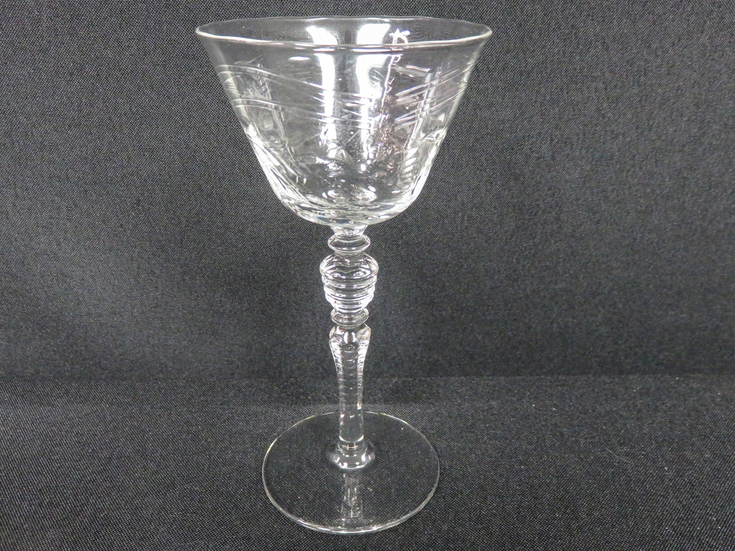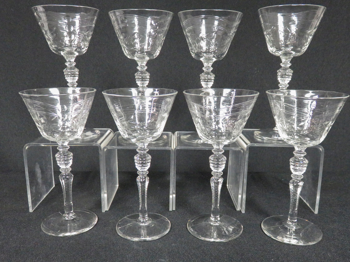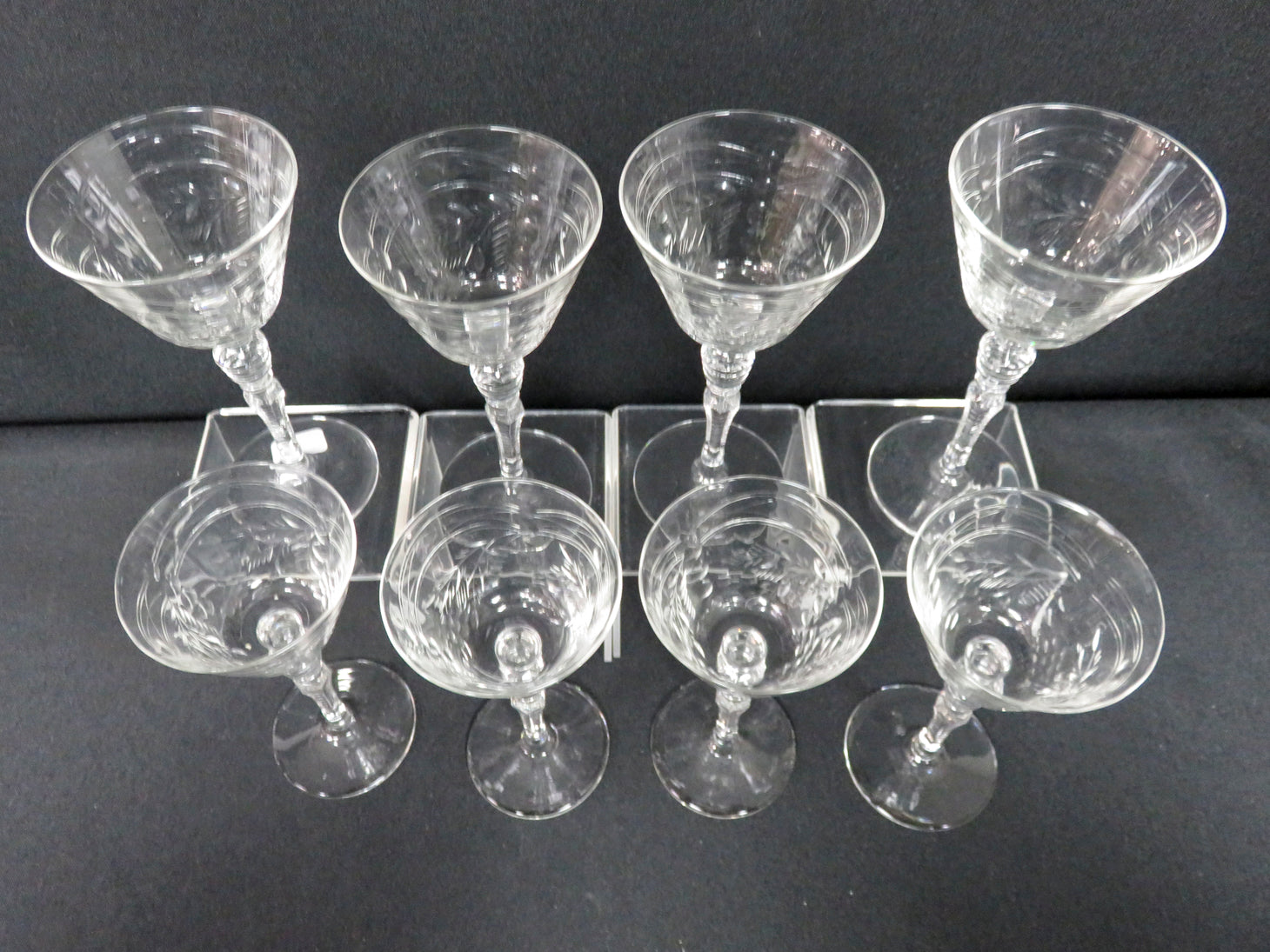Item Number: 29810-18 Set of 8, clear with edged leaf design, horizontal ridge on stem. Hand blown. 5.5" H