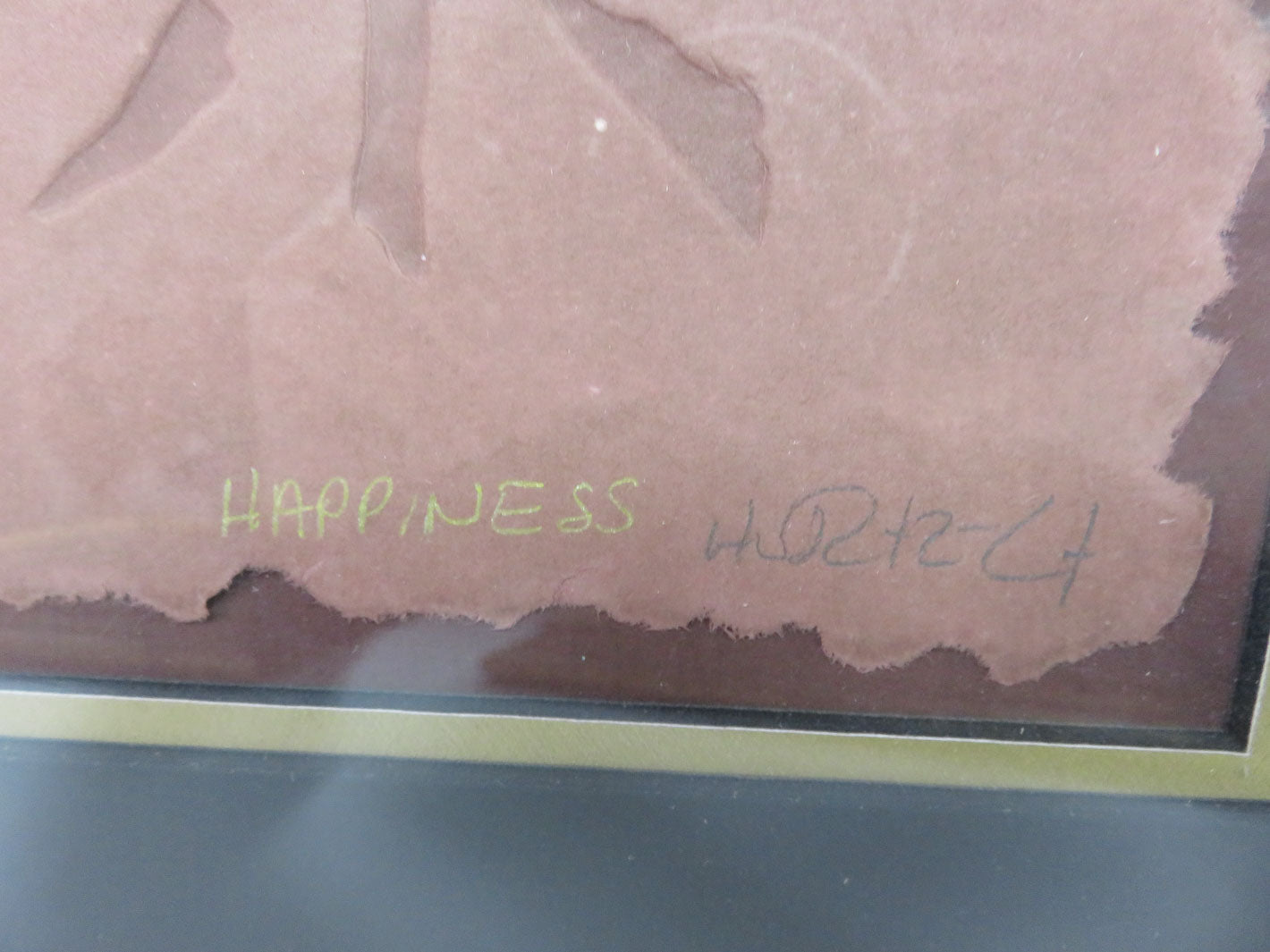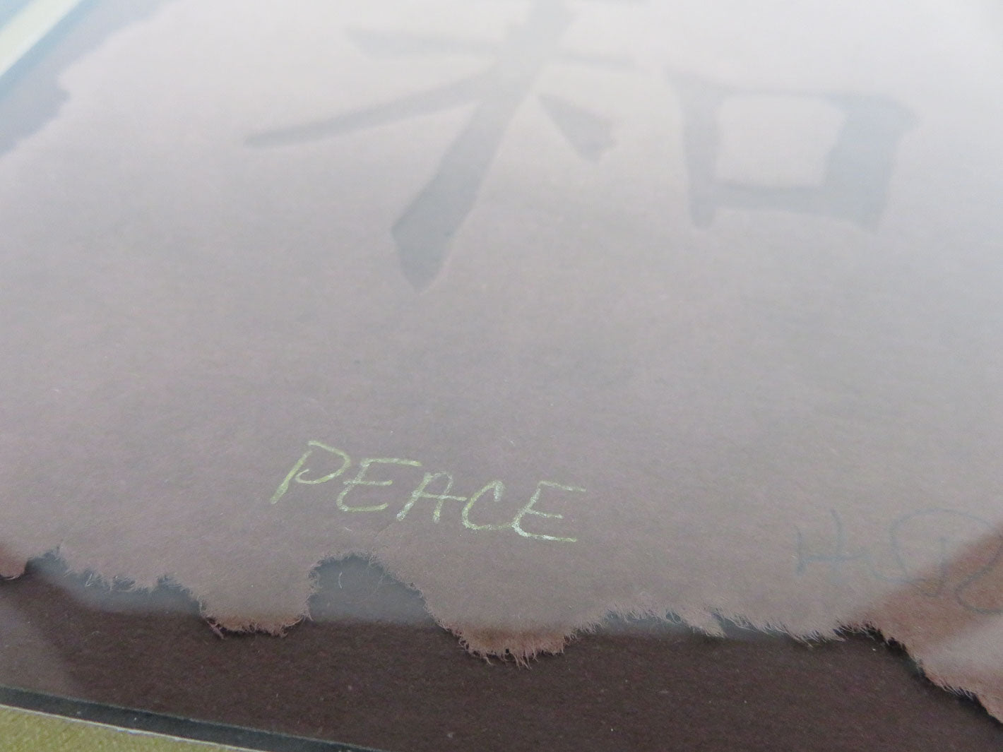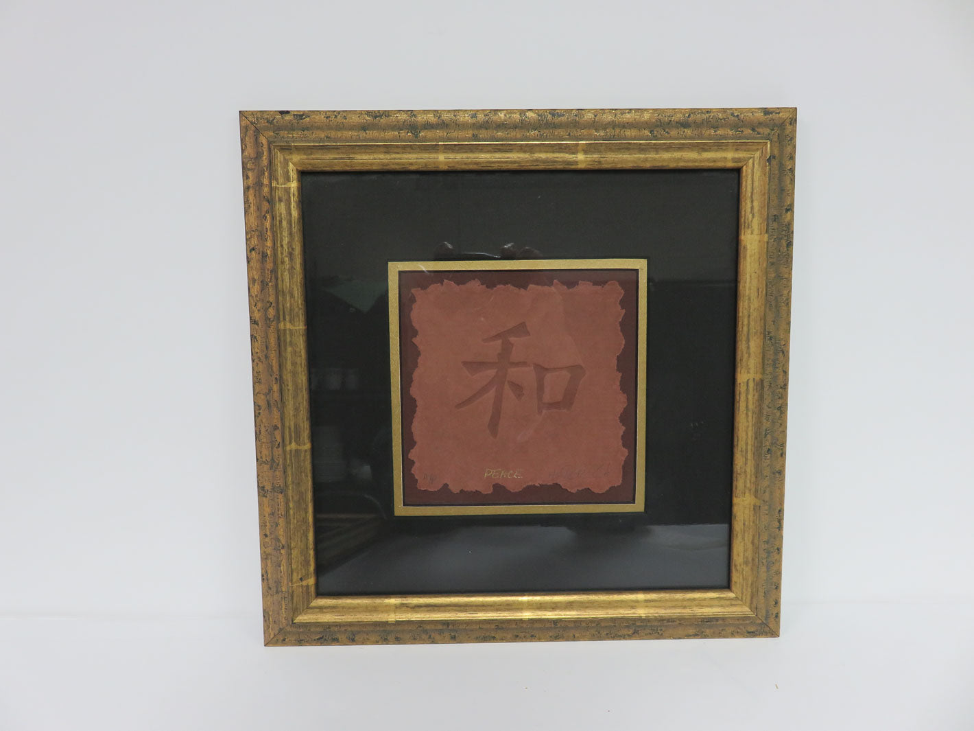 Set of 3 "Love", "Happiness" and "Peace", plum colored, black and gold double matting, A/P signed. 12.25" x 12.25"