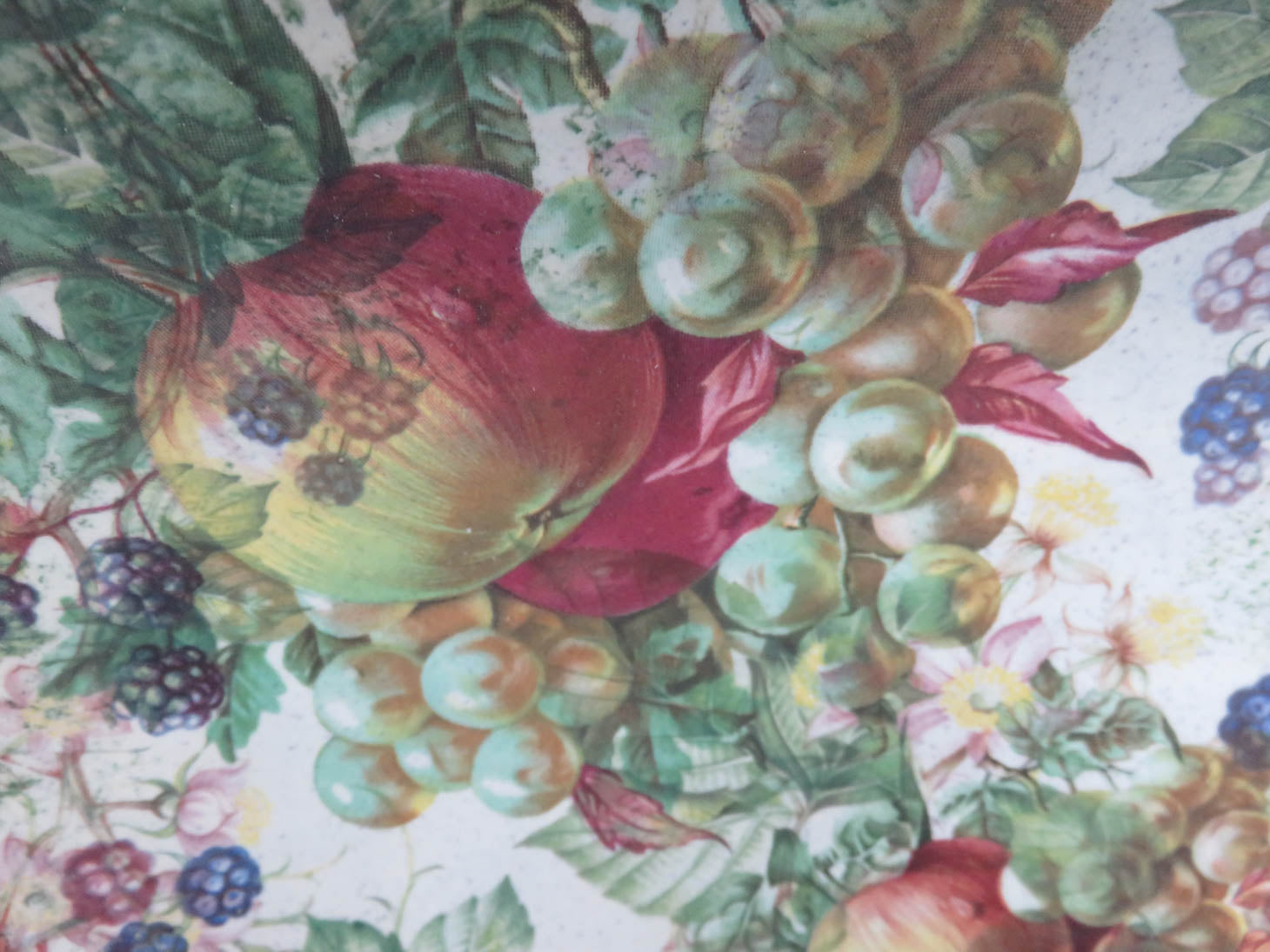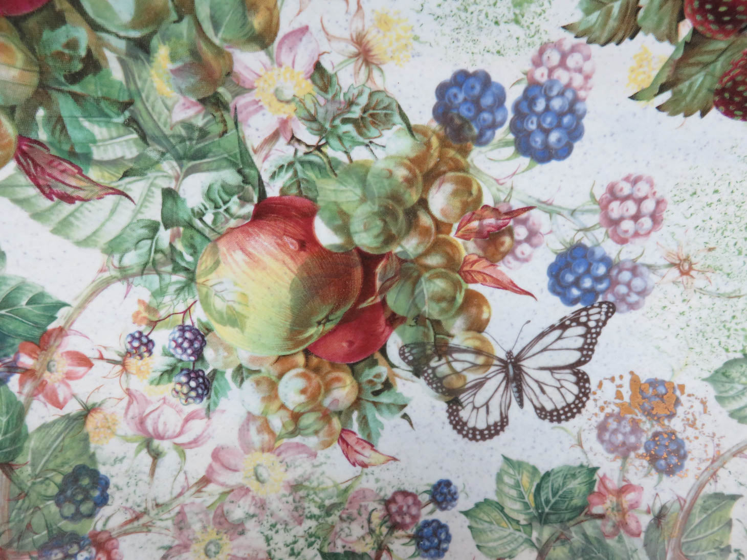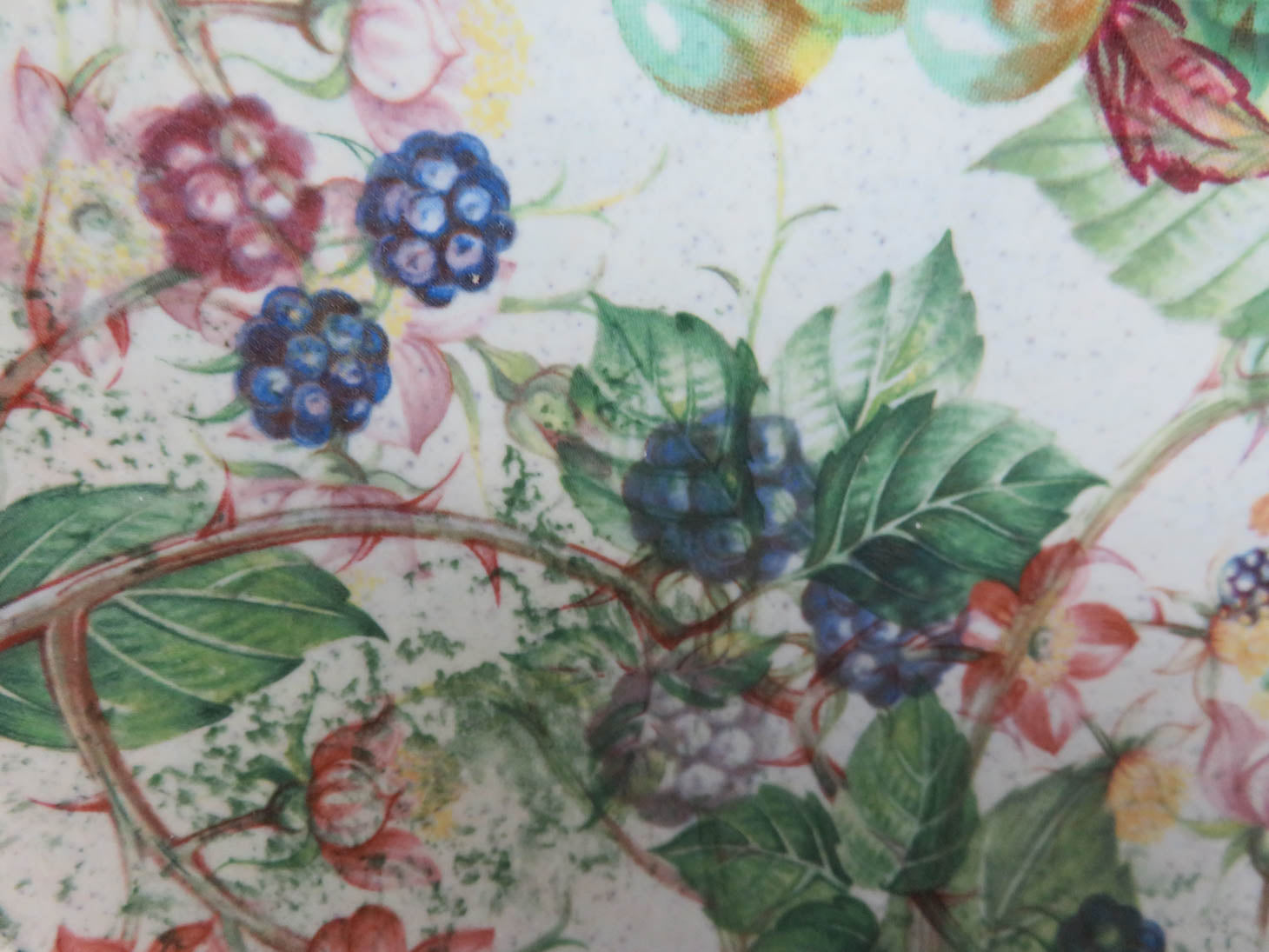 Item Number: 12703-29 Wydnor Hall, oval bowl "Bramble" pattern, fruit and berry pattern (small chip on edge) 15.5" x 9" x 2"H