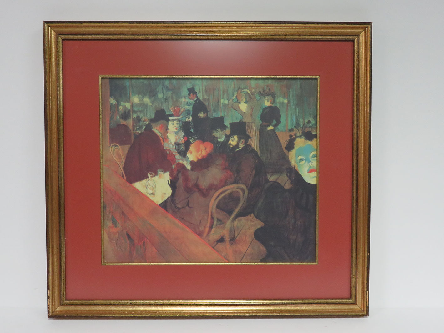 "At the Moulin Rouge" with red mat, non-glare glass and gold frame