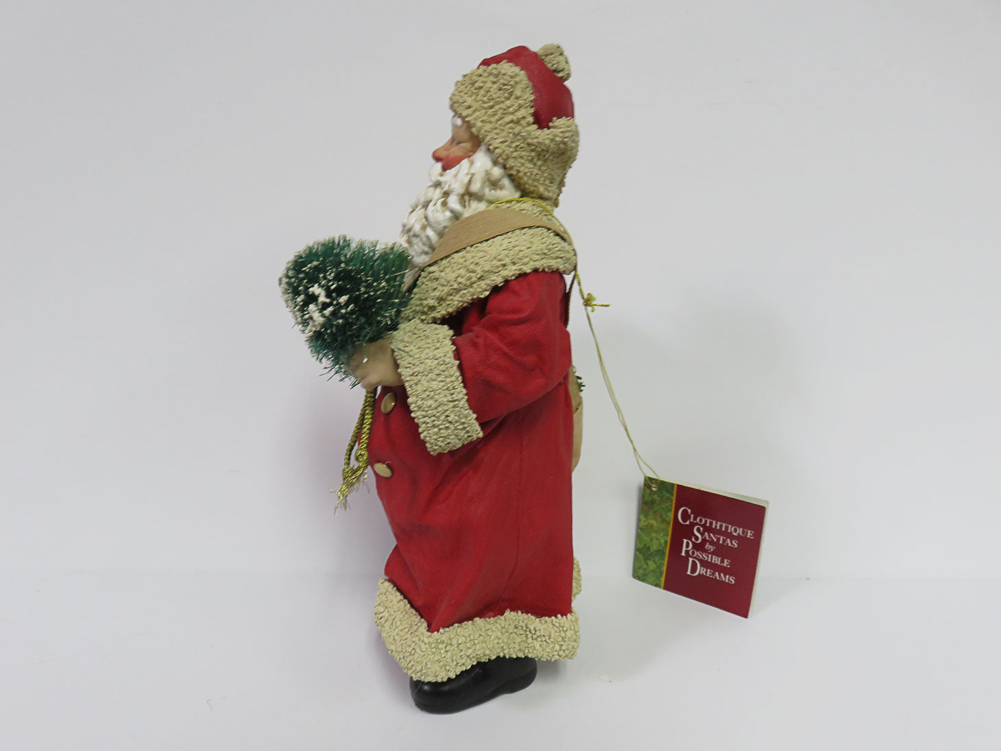 By Possible Dreams, Santa with flocked tree and sack of toys, with tags, 1994