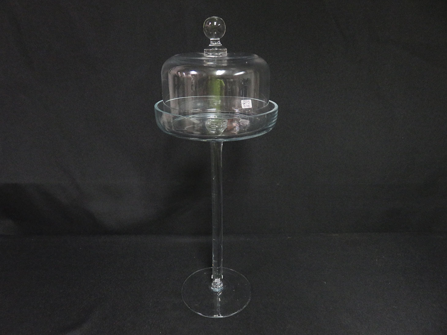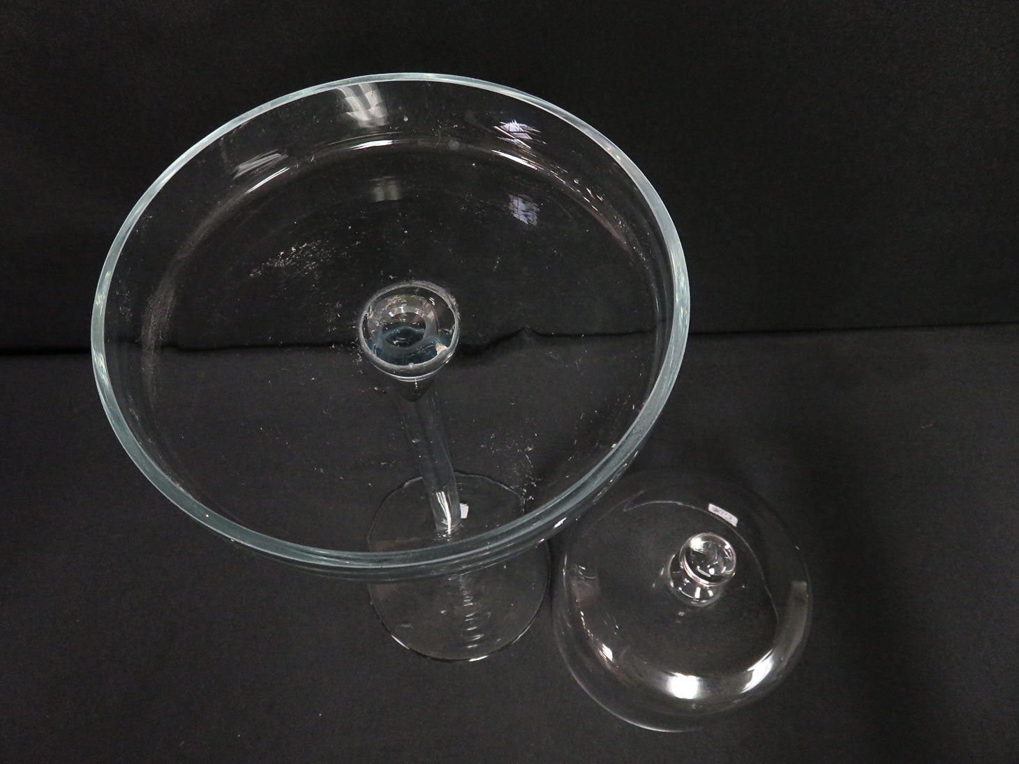 Clear long stem on round pedestal base with lid and bulb handle, 2 pcs.
