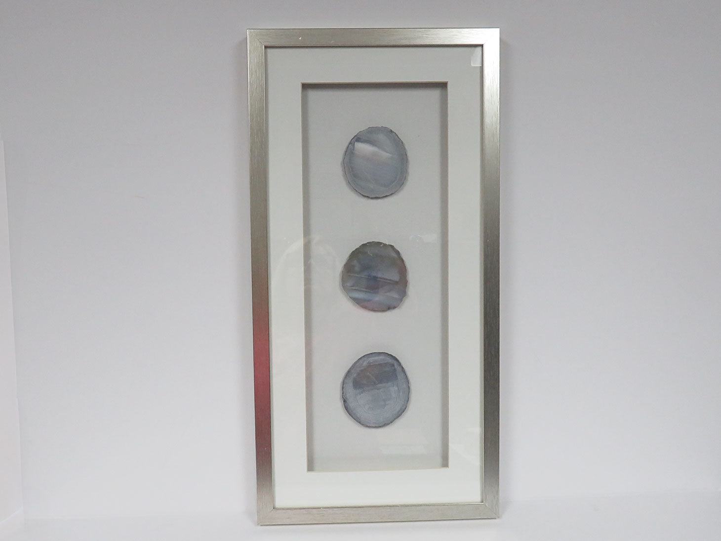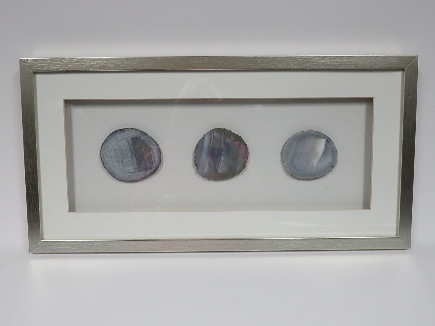 Brown-tone geode slices matted in silver tone frame, hang vertical or horizontal