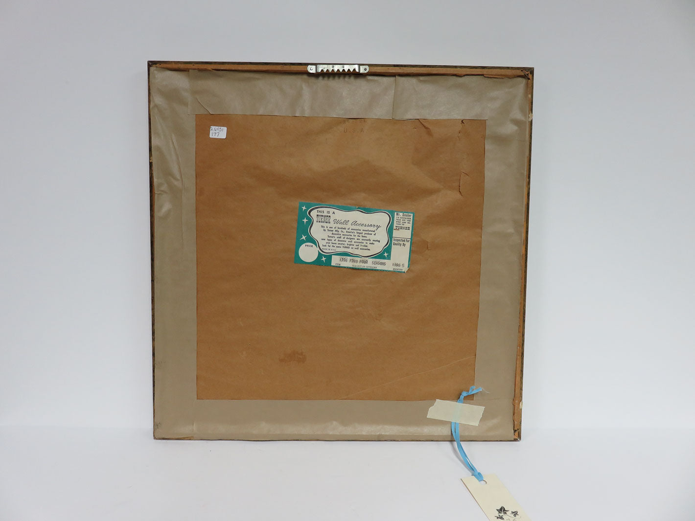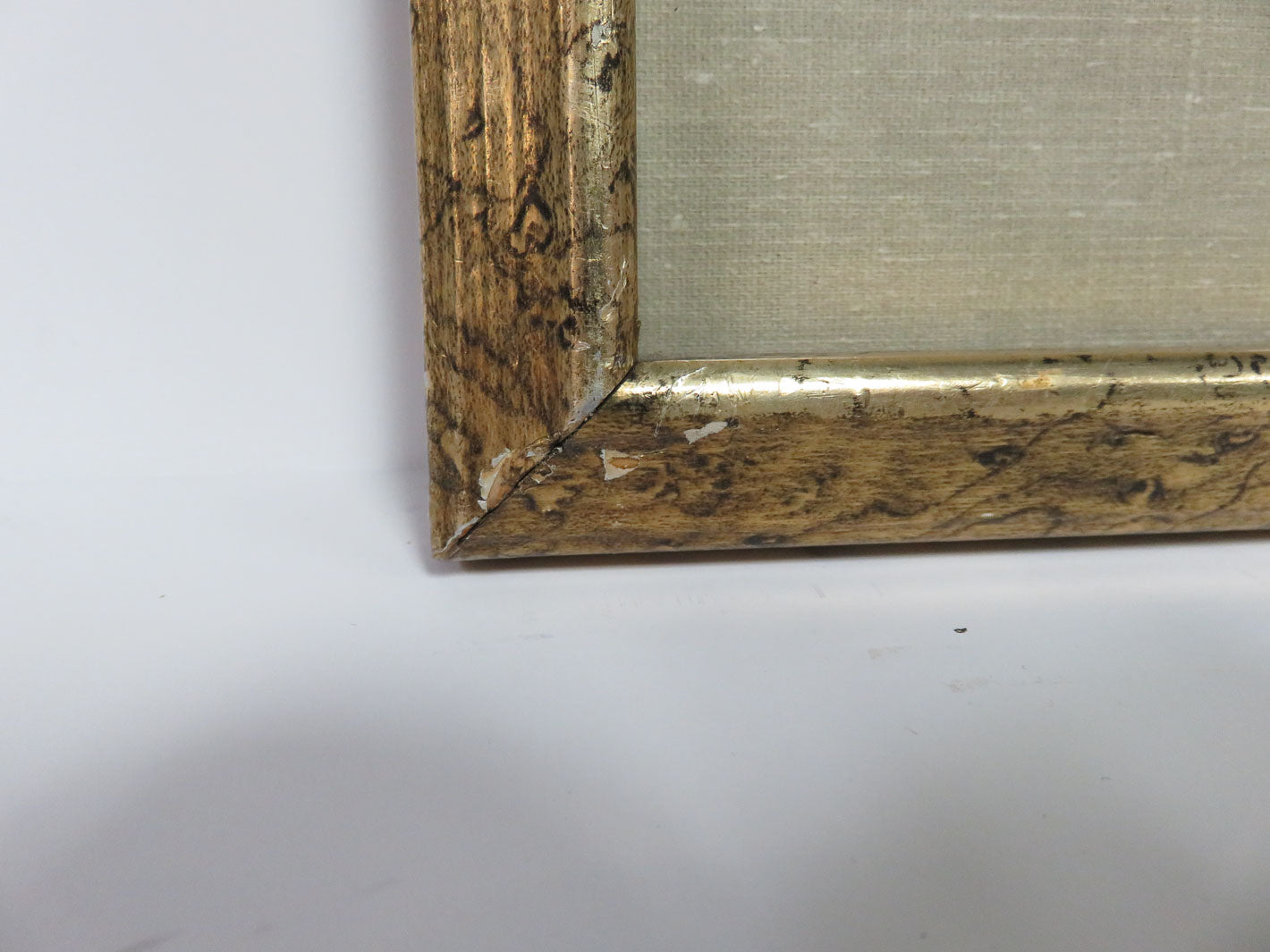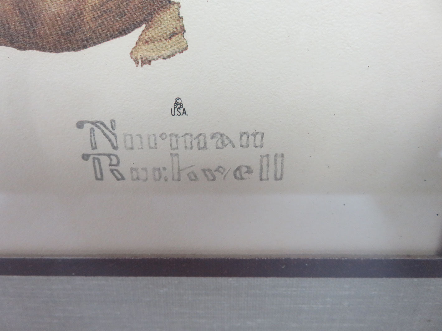 Item Number: 26431-177 Norman Rockwell print, man and boy on pumpkins, cream linen mat, distressed gold frame, 1969 17" x 17"