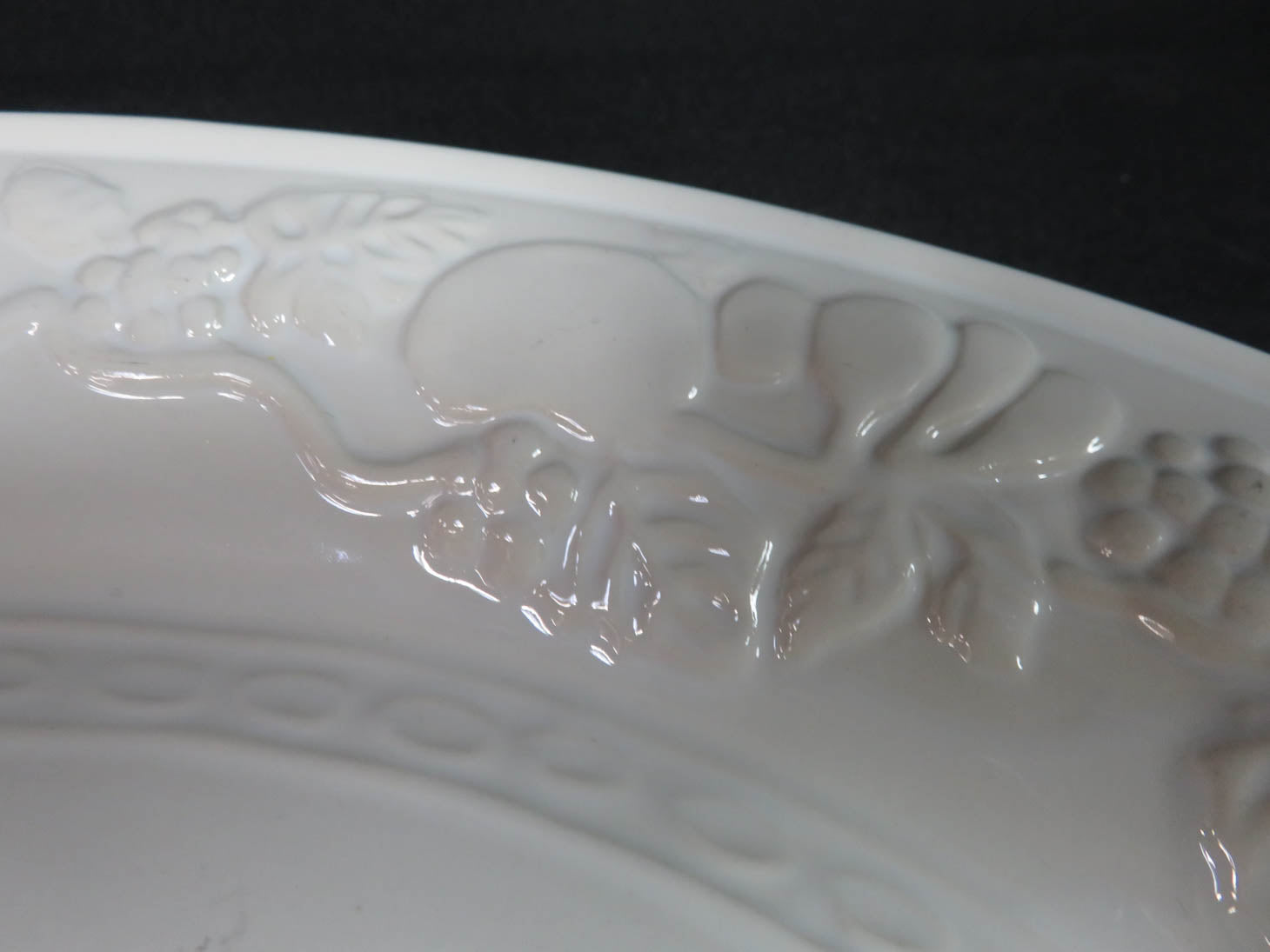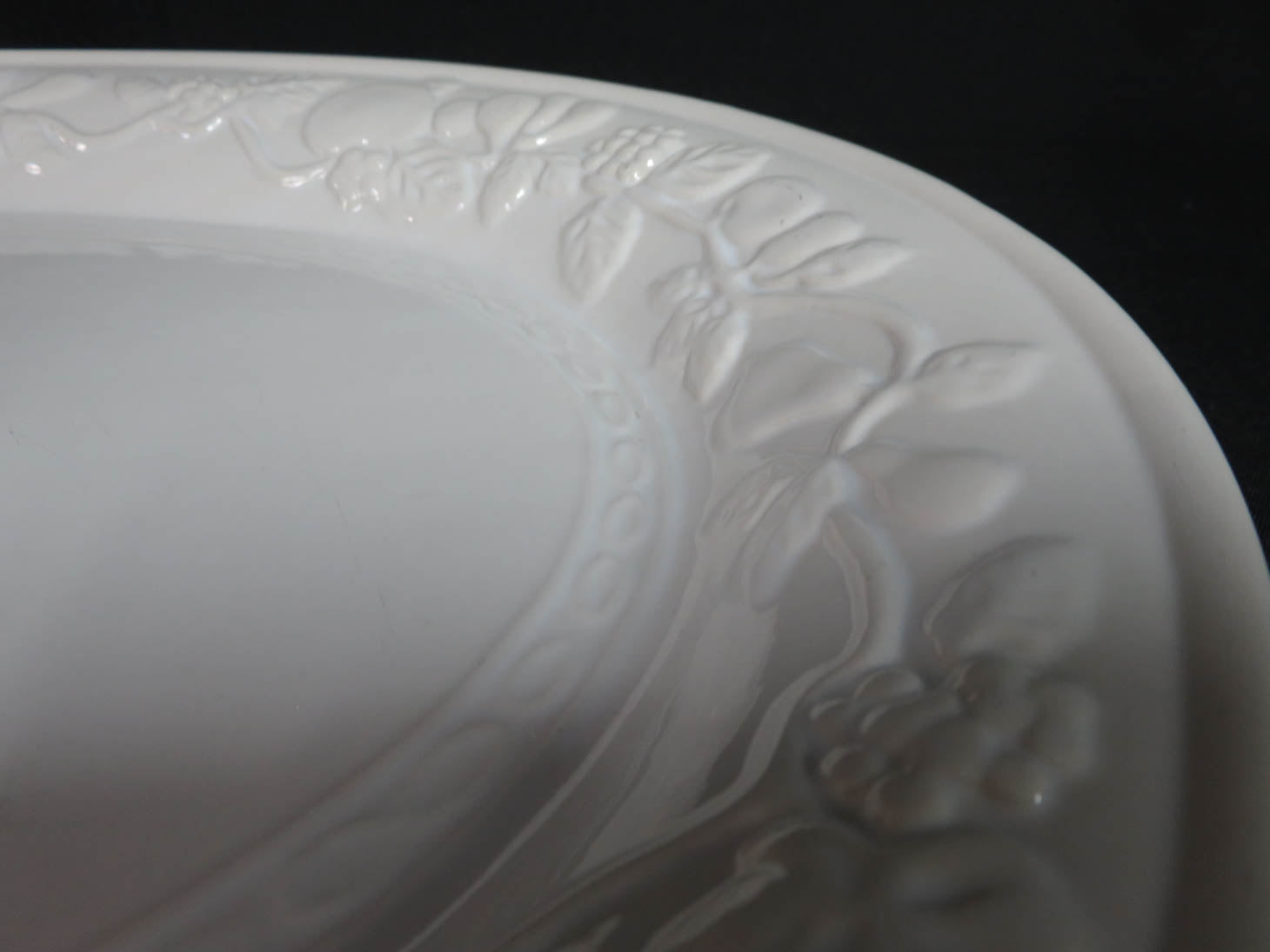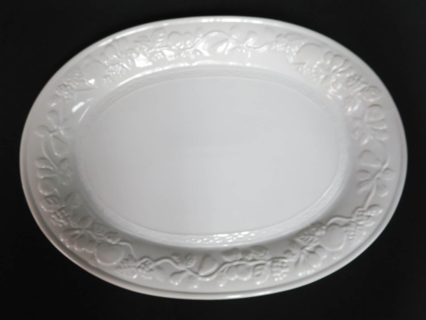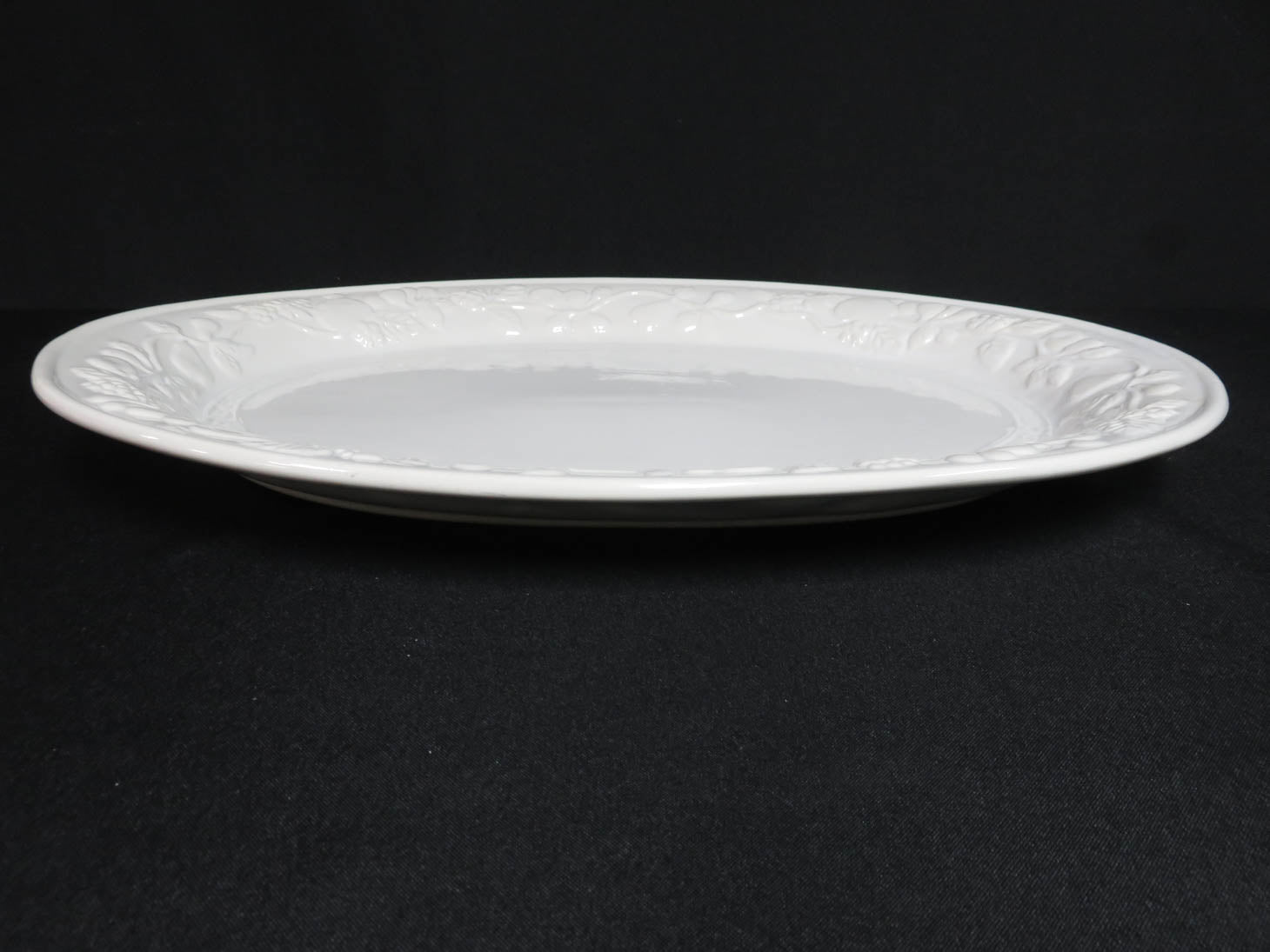 Oval cream colored platter with raised fruit rim
