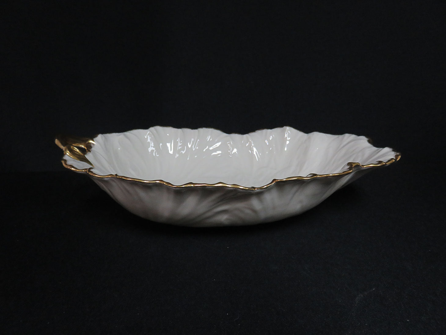 Scalloped gold edge and handle, leaf-shape