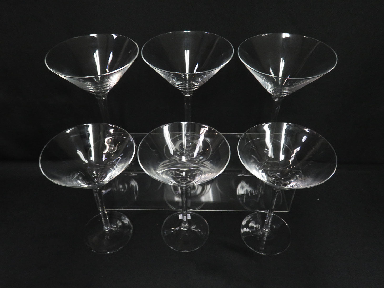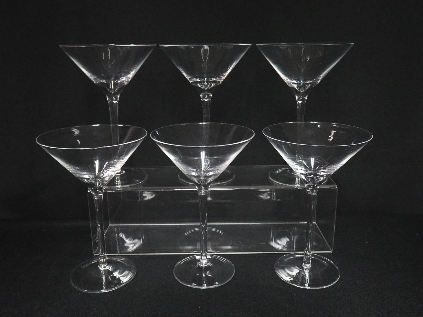 Set of 6 stemmed clear glass martini glasses