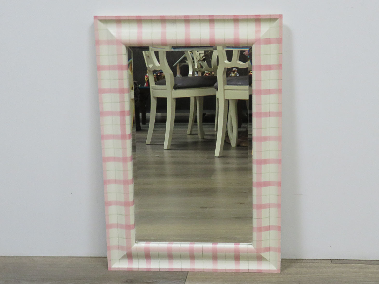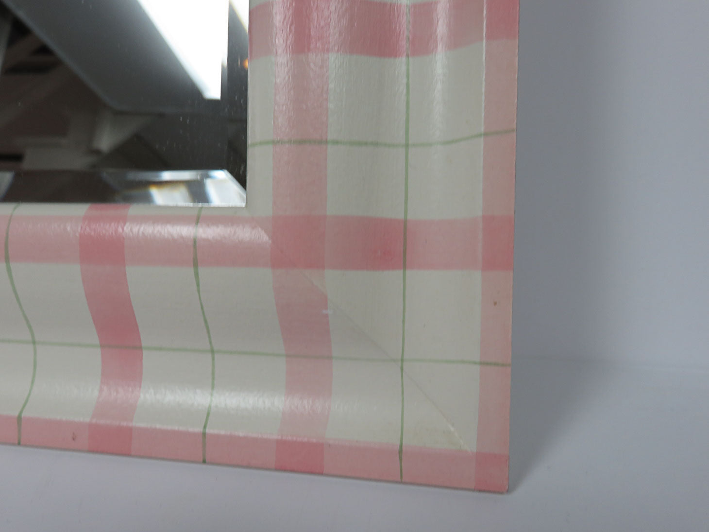 Pink, green and white plaid, beveled, can be hung, rectangular