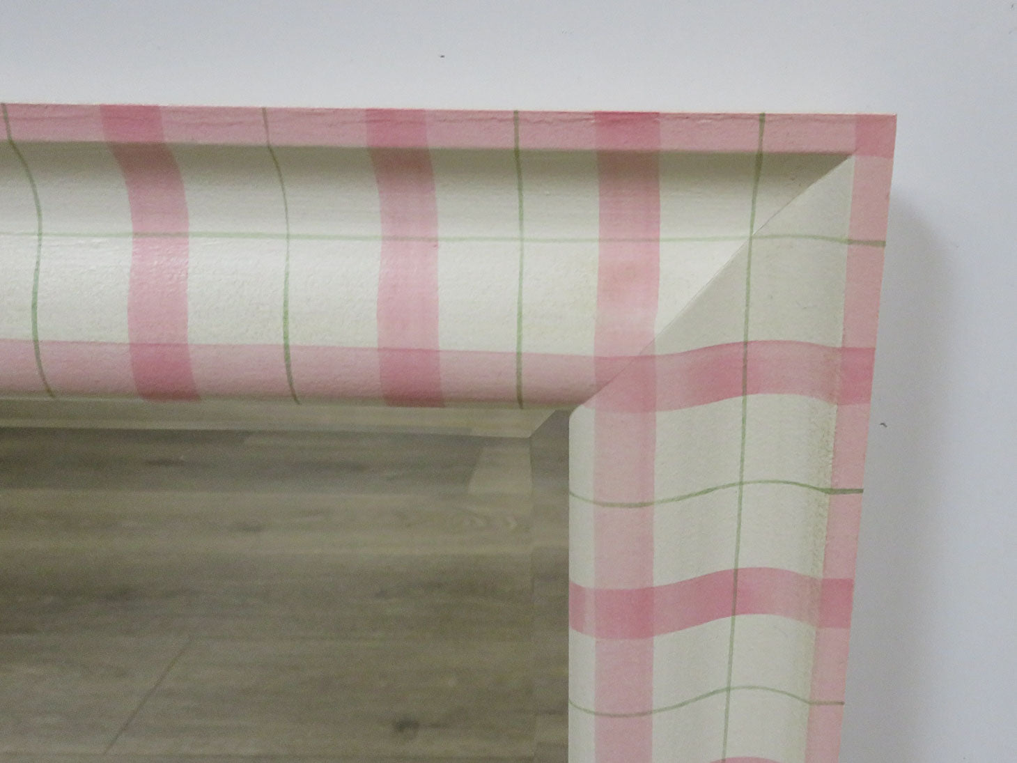 Pink and green and white plaid, beveled, can be hung, rectangular