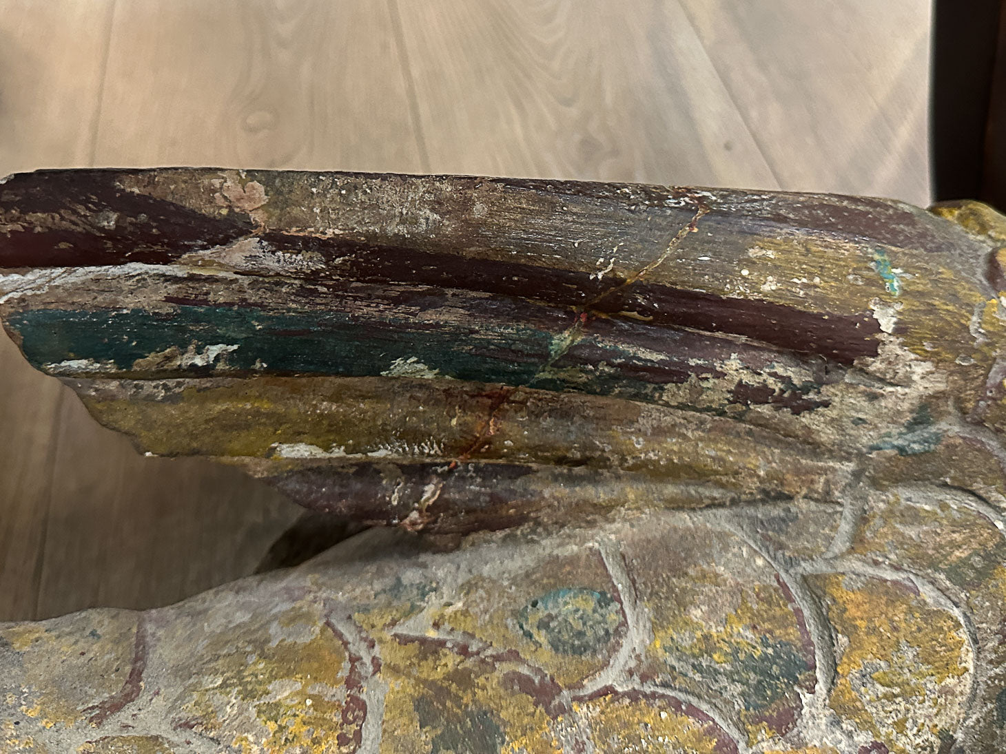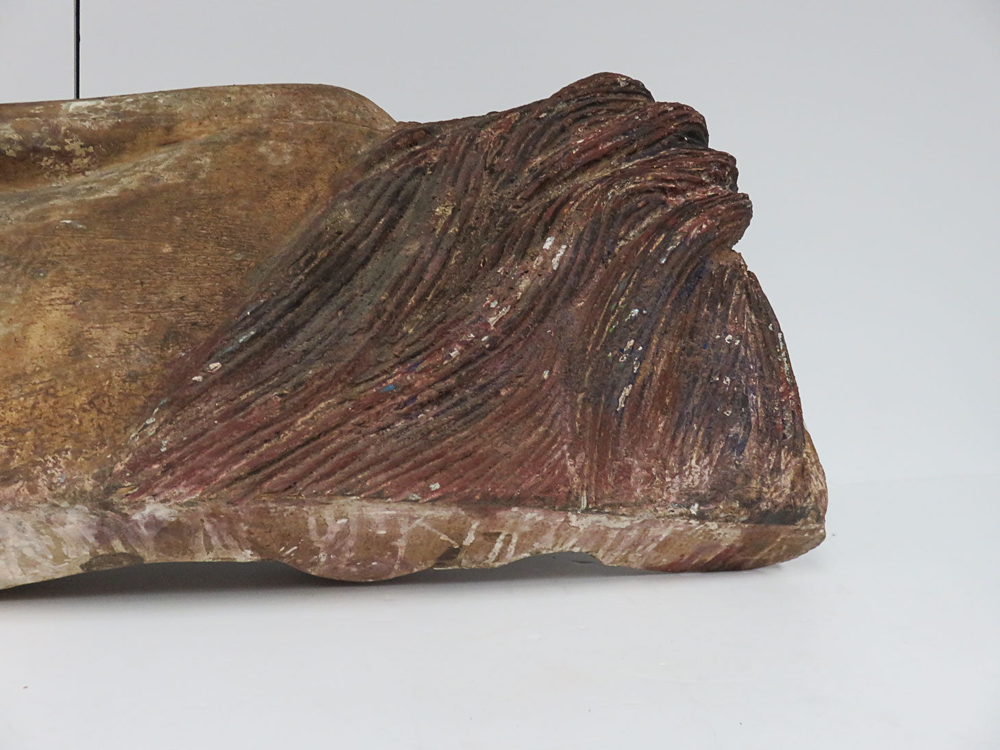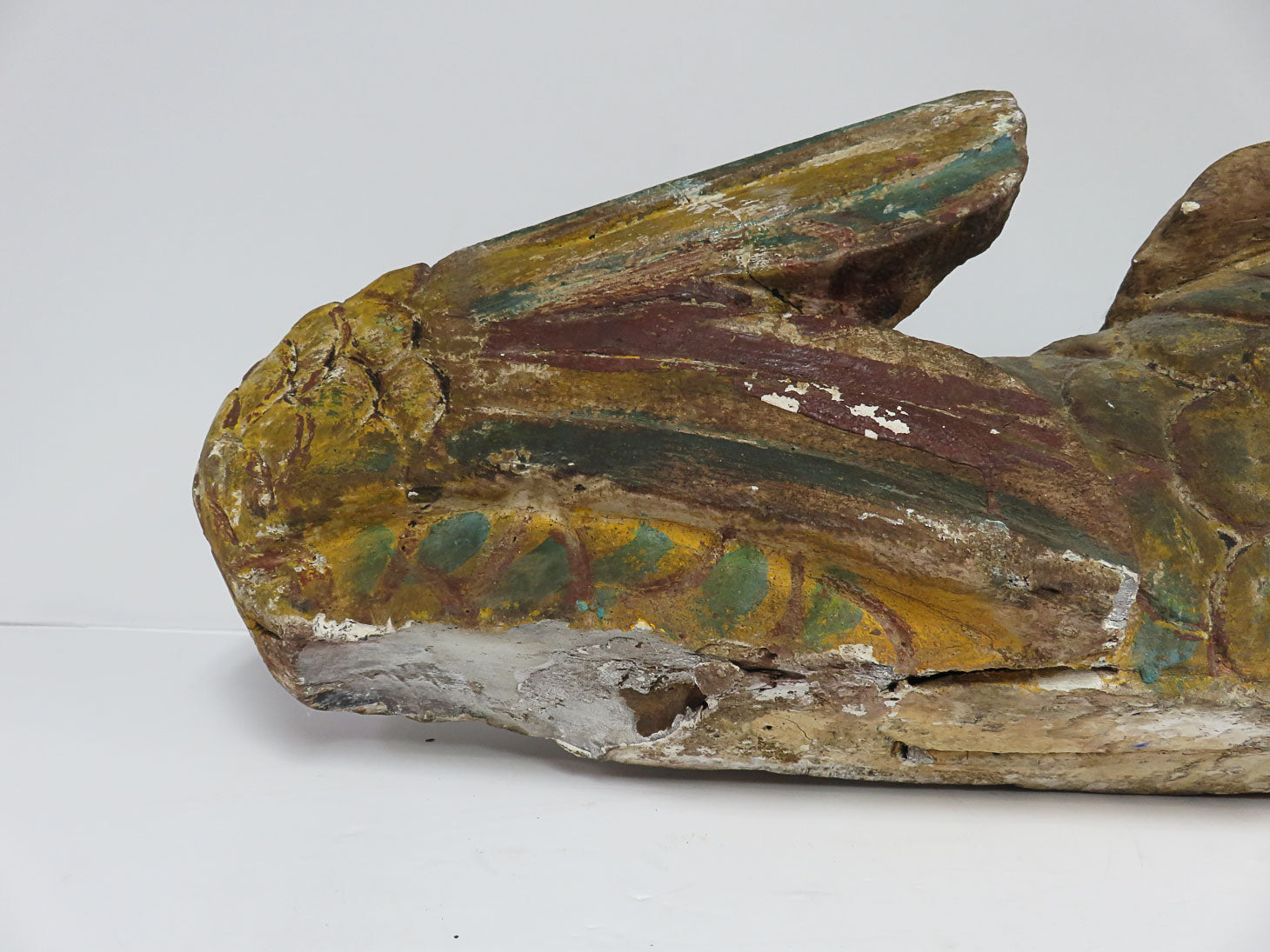 Item Number: 29529-19 Hand painted with distressed folk art finish. Mermaid leaning on her arm has small chips and cracks. 47.5"W x 6"D x 14"H