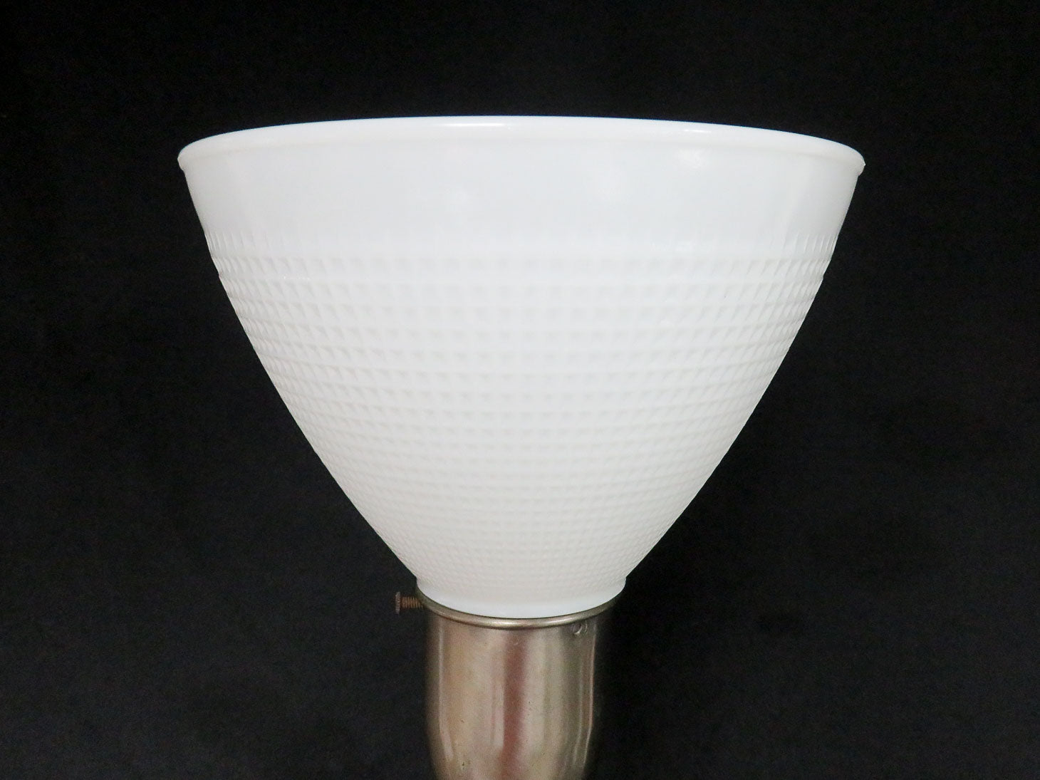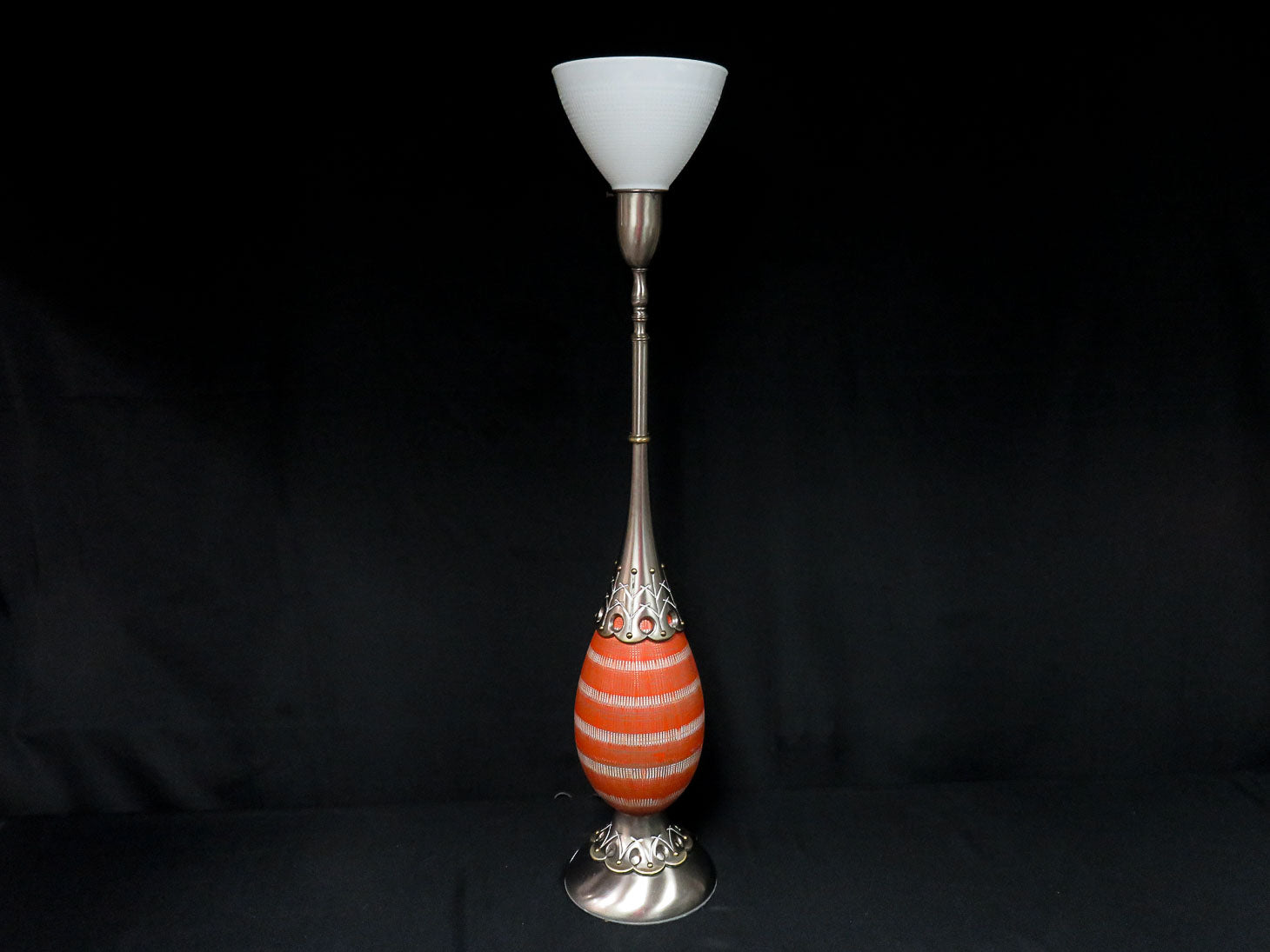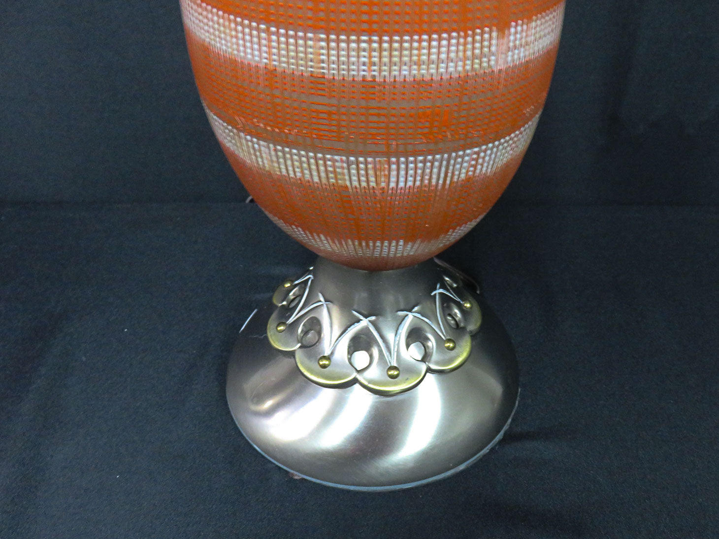 Round metal base, with orange and white ceramic body, frosted glass shade