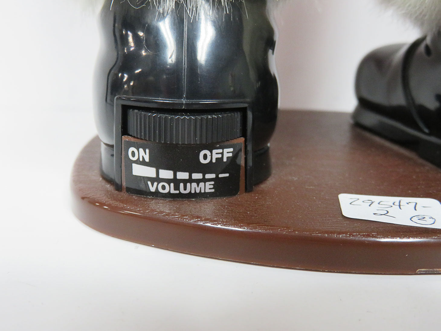 Item Number: 29547-3 Musical Santa "Rocking around the Christmas Tree" in brocade vest dances. Uses AC adapter. 2pieces 17"h
