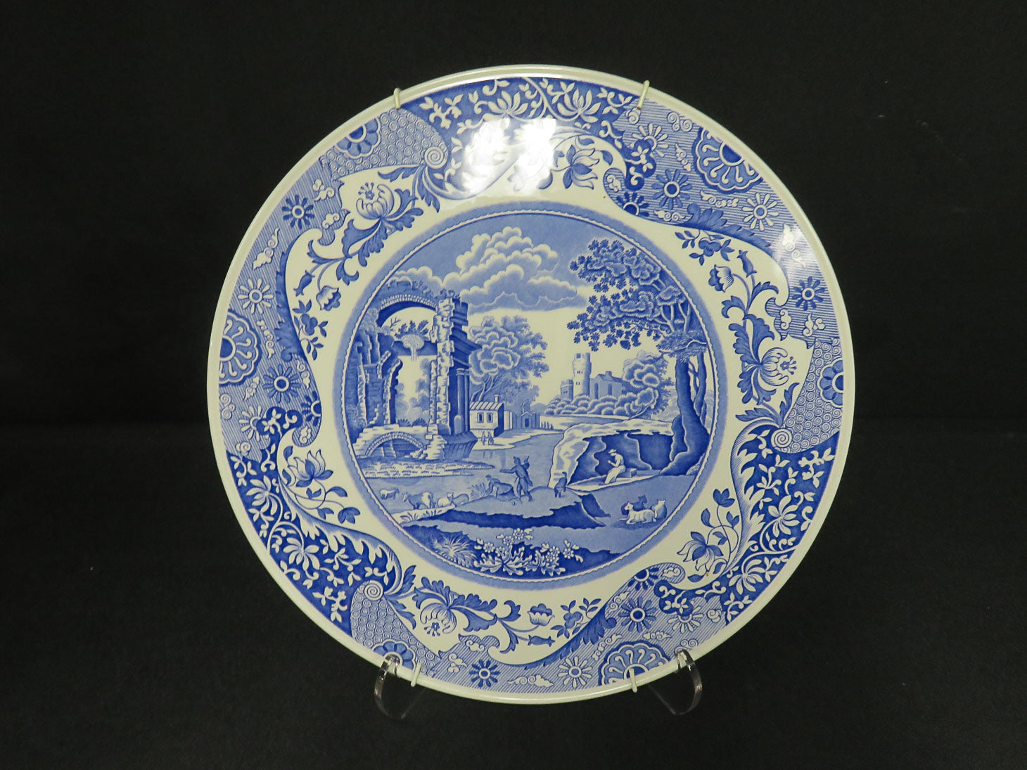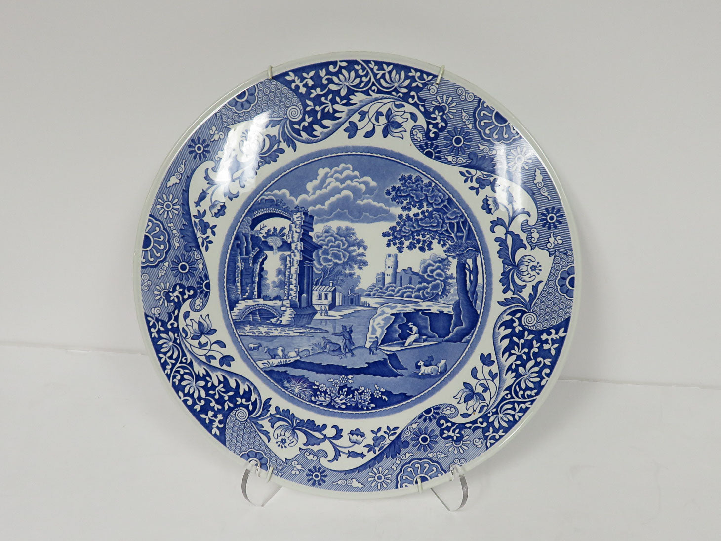 Blue on white transferware scene of Italian landscape. Can be wall mounted with attached holder.