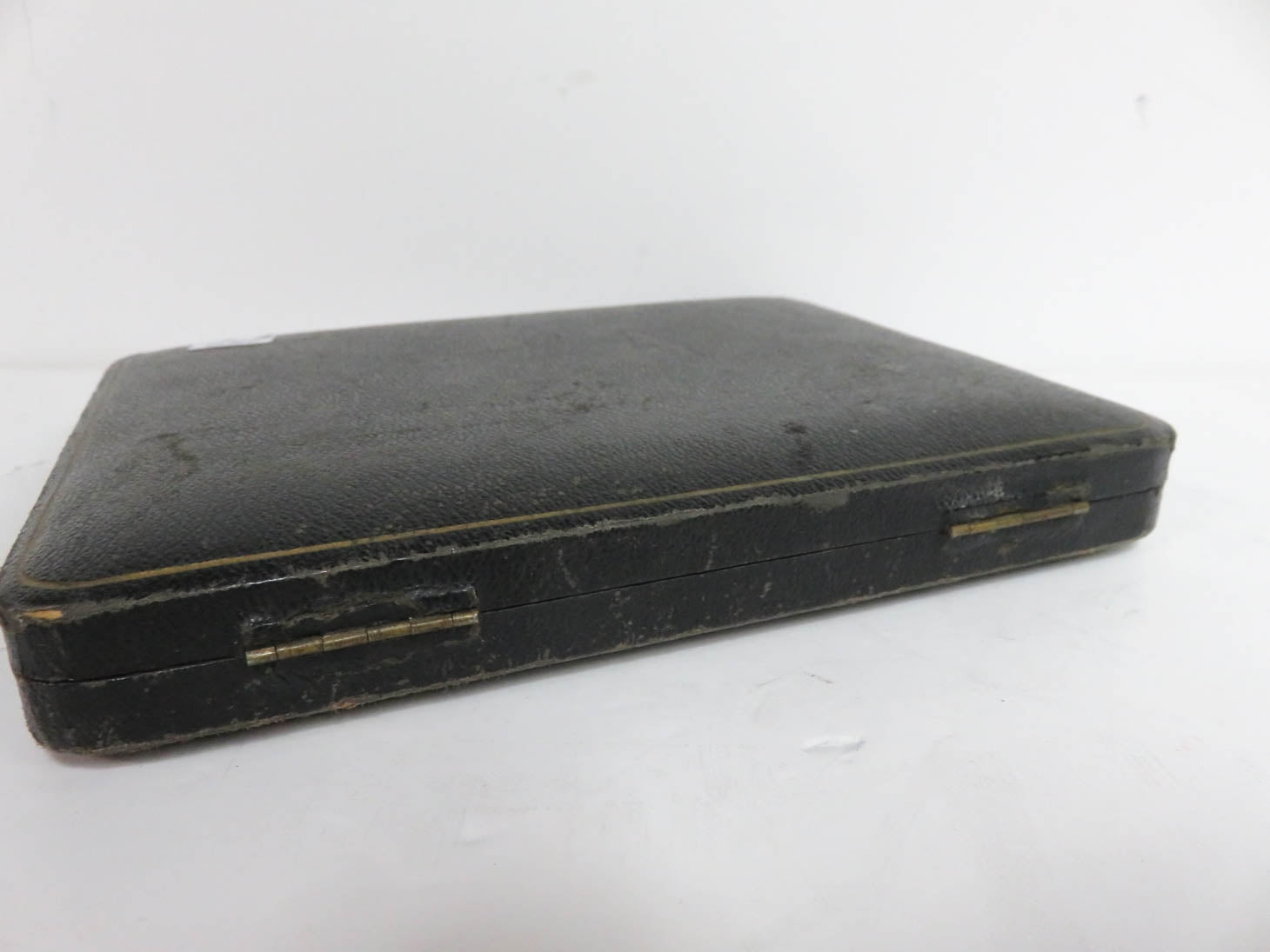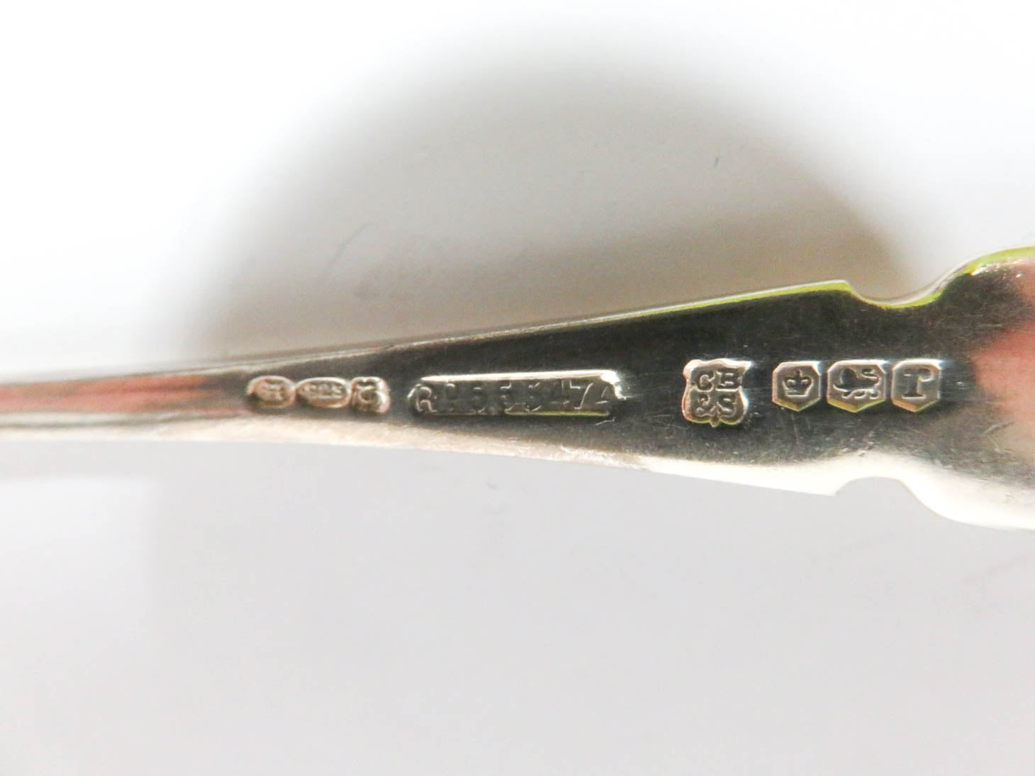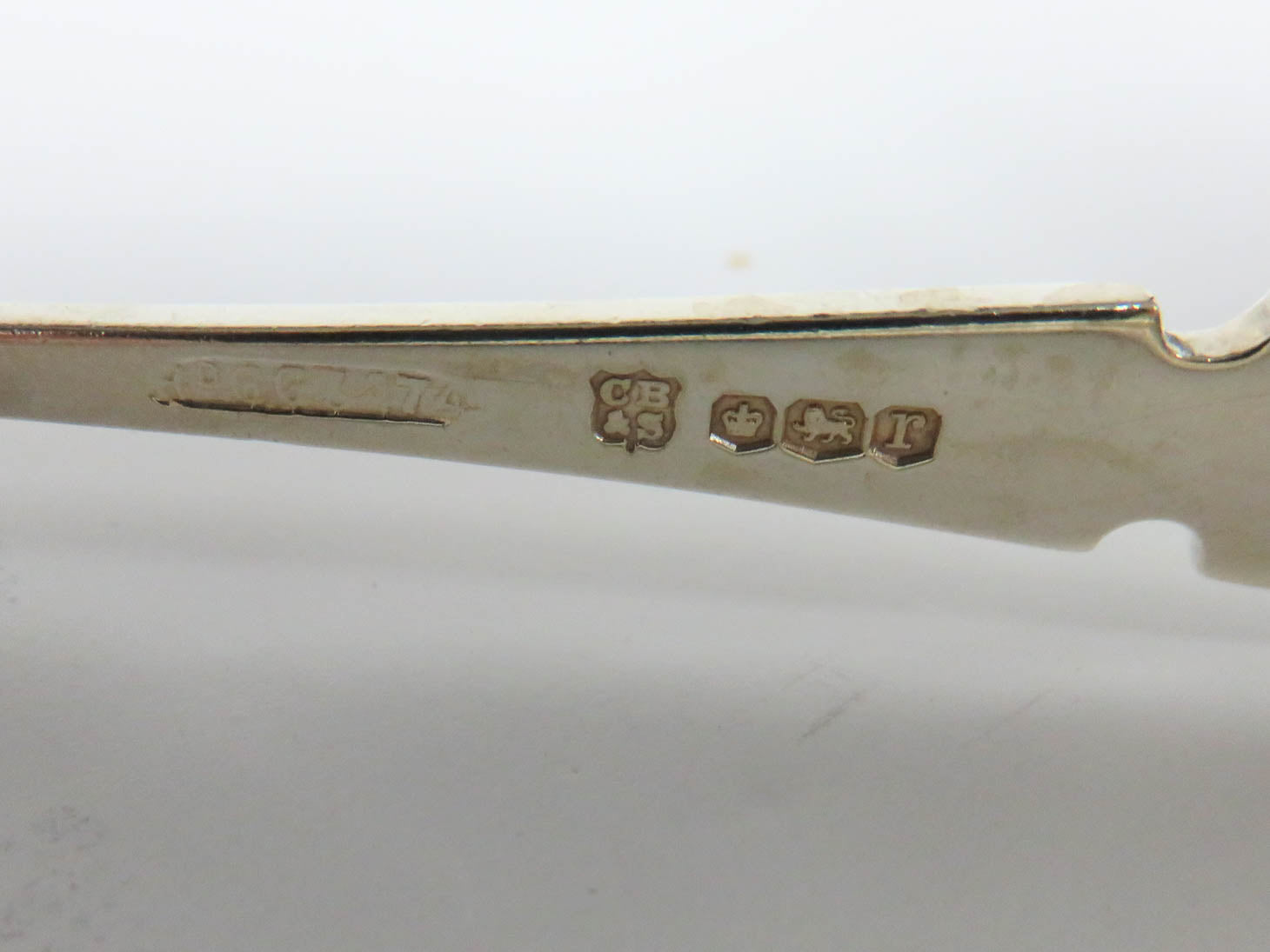 Tongs and 6 small spoons by William Egan & Sons in a silk lined case. Approx wt. 3.19oz