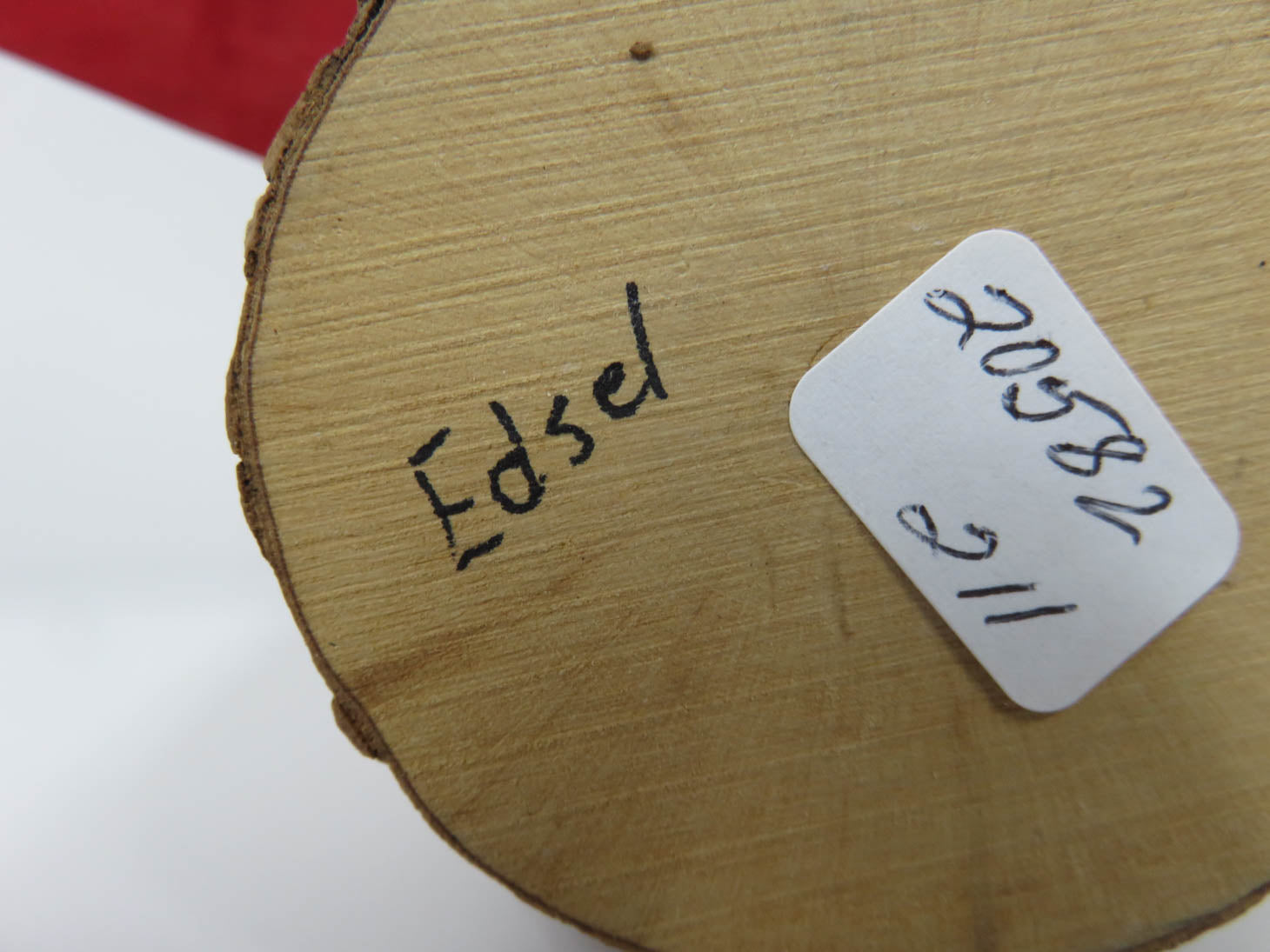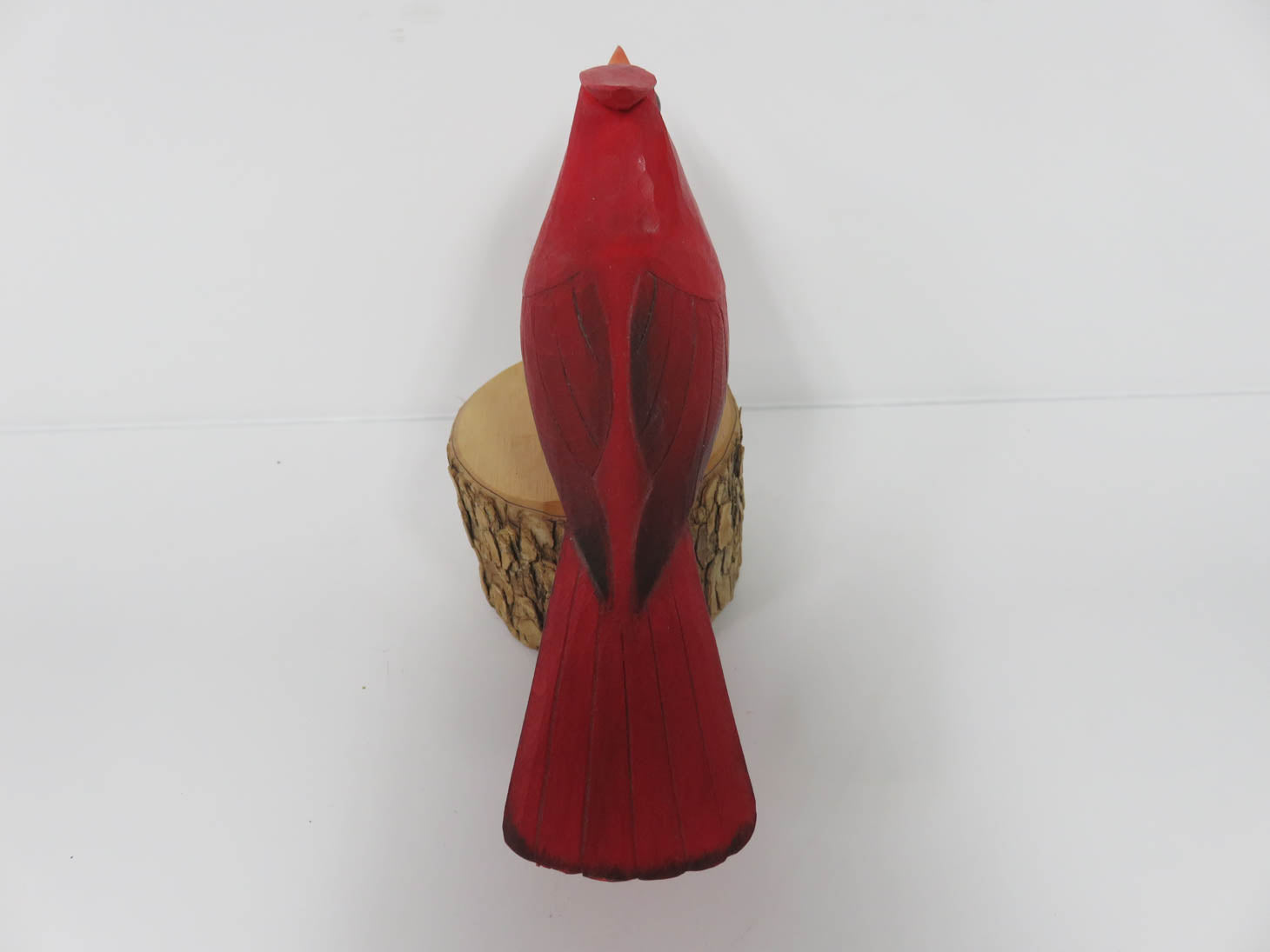 Item Number: 20582-211 Red cardinal on a tree stump base. Hand crafted and signed by Edsel. 5.25 x 4.25" H