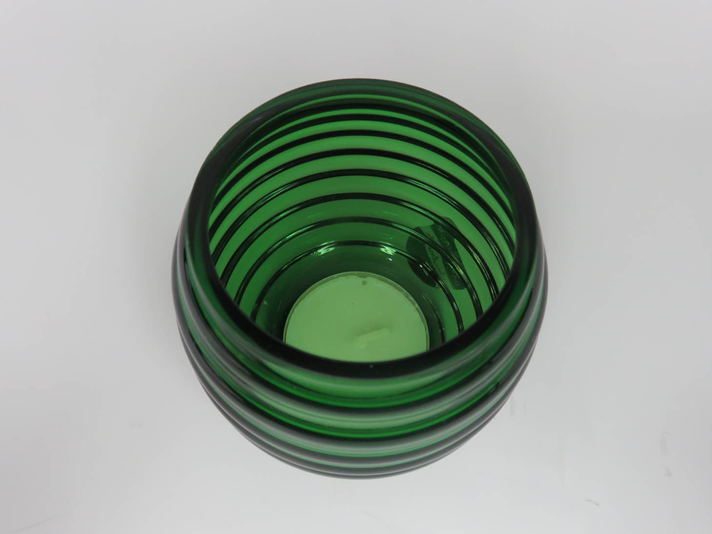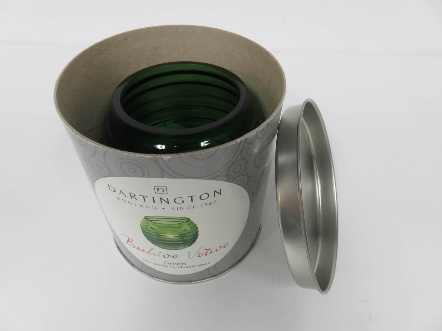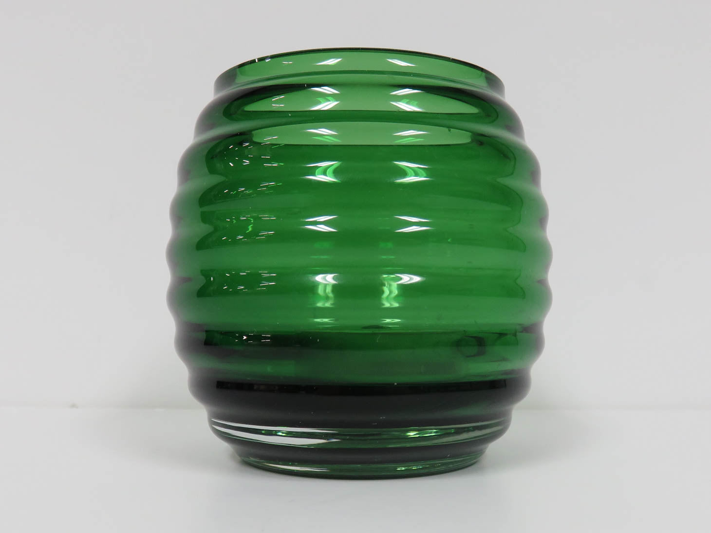 Item Number: 17090-546 Green glass, hand crafted beehive shape with ribbed texture, includes votive. NIB. 3"W x 3.25"H