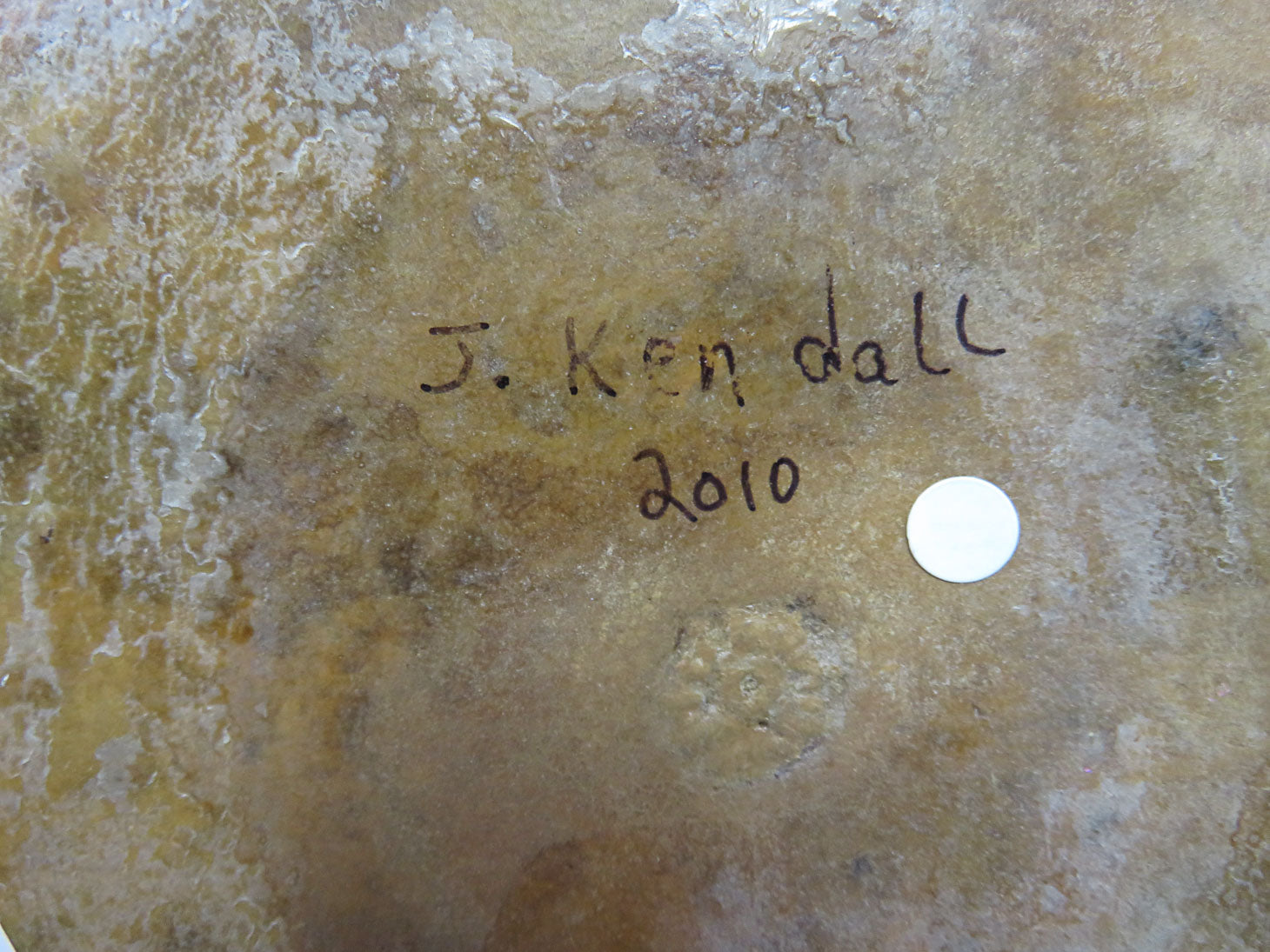 Item Number: 4837-152 Large, pink and purple flowers, metallic circle, signed J. Kendall 2010. 12"W x 19.5"H