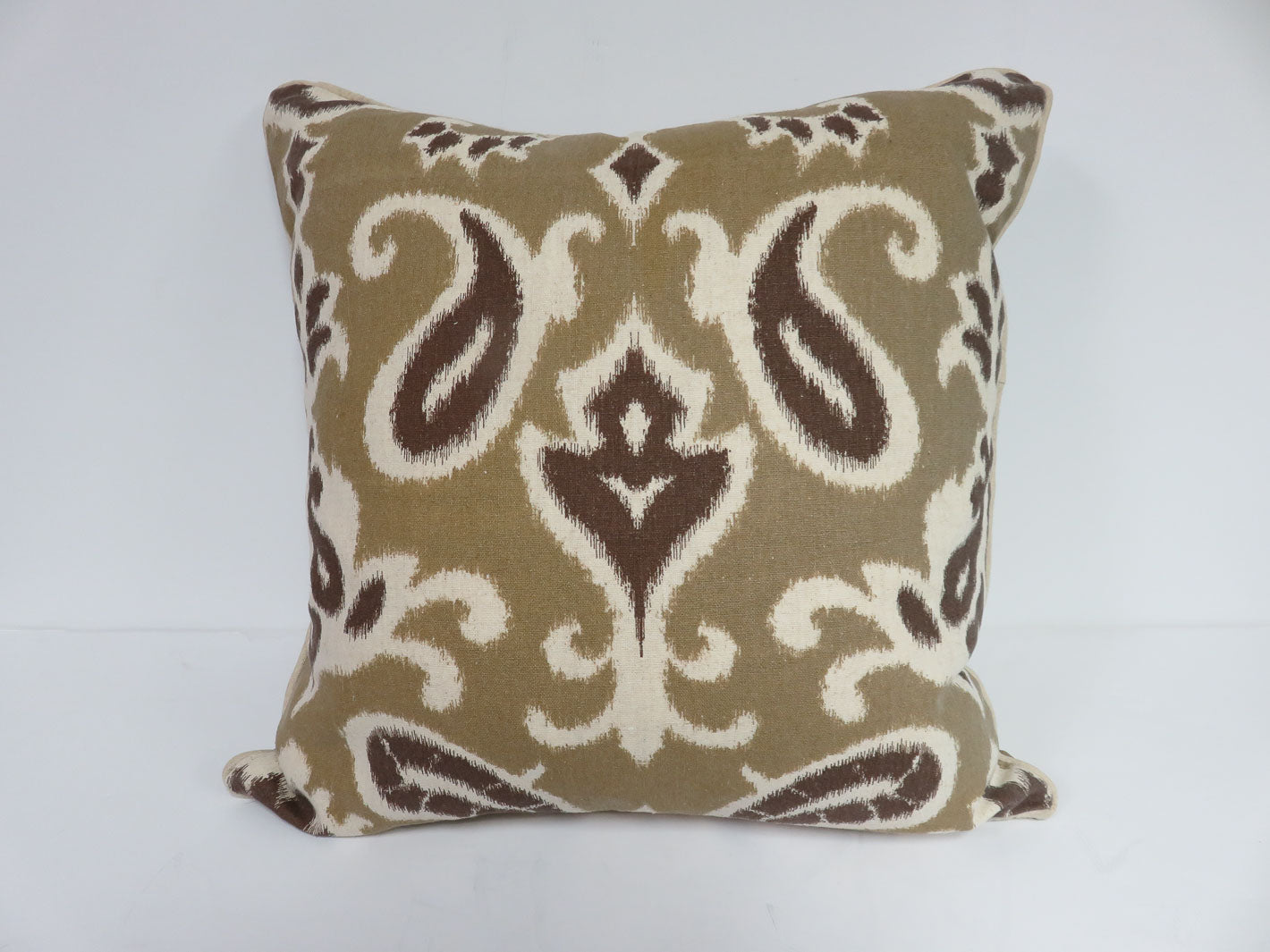 Tan, cream and brown, cream piping, zipper, feather insert.