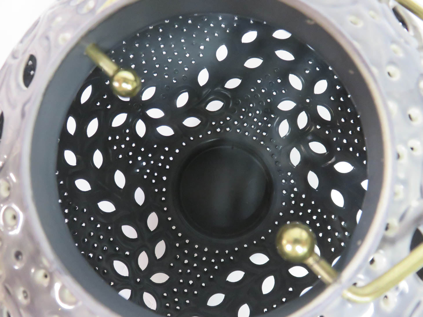 Gray with retriculated floral leaf and dot design with gold metal handle