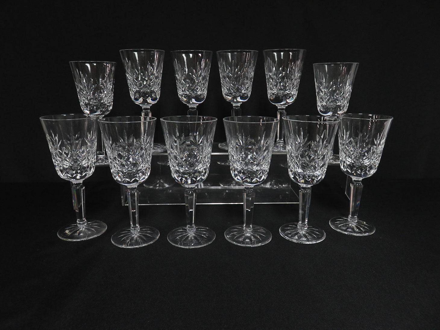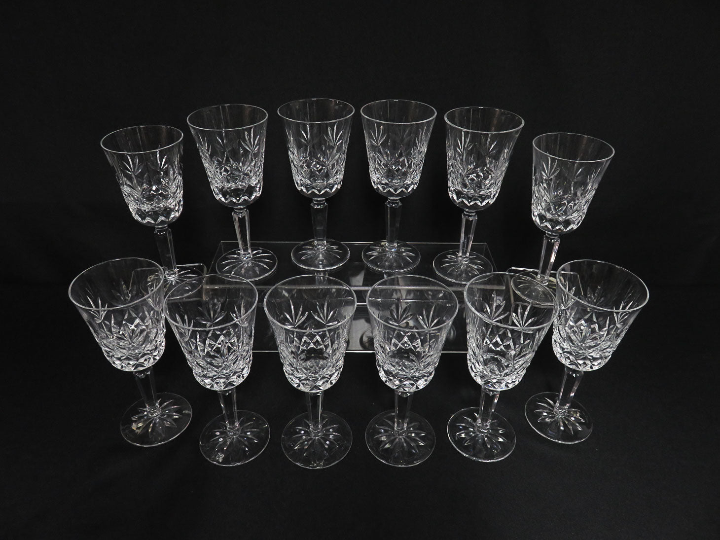 Set of 12, "Charleston" pattern. Clear with diamond and fan cuts