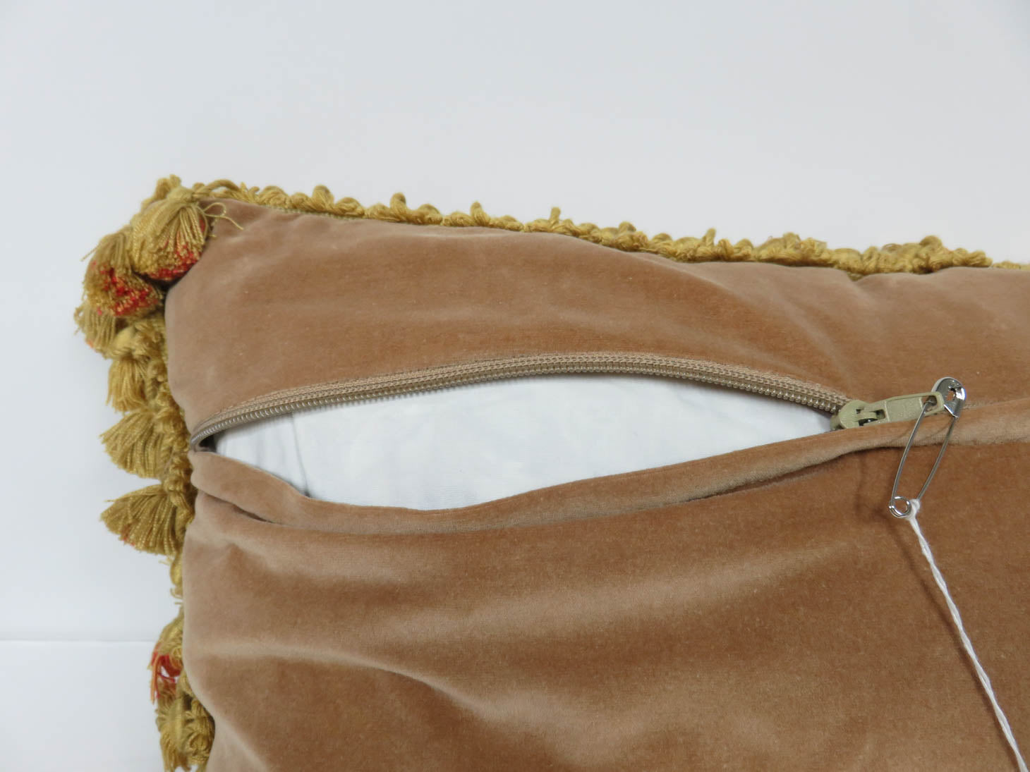 Item Number: 17321-48 Floral tapestry front with velvet back, tassel trim, zipper, feather filled. Two available, sold separately, #17321-49. 24" x 12"
