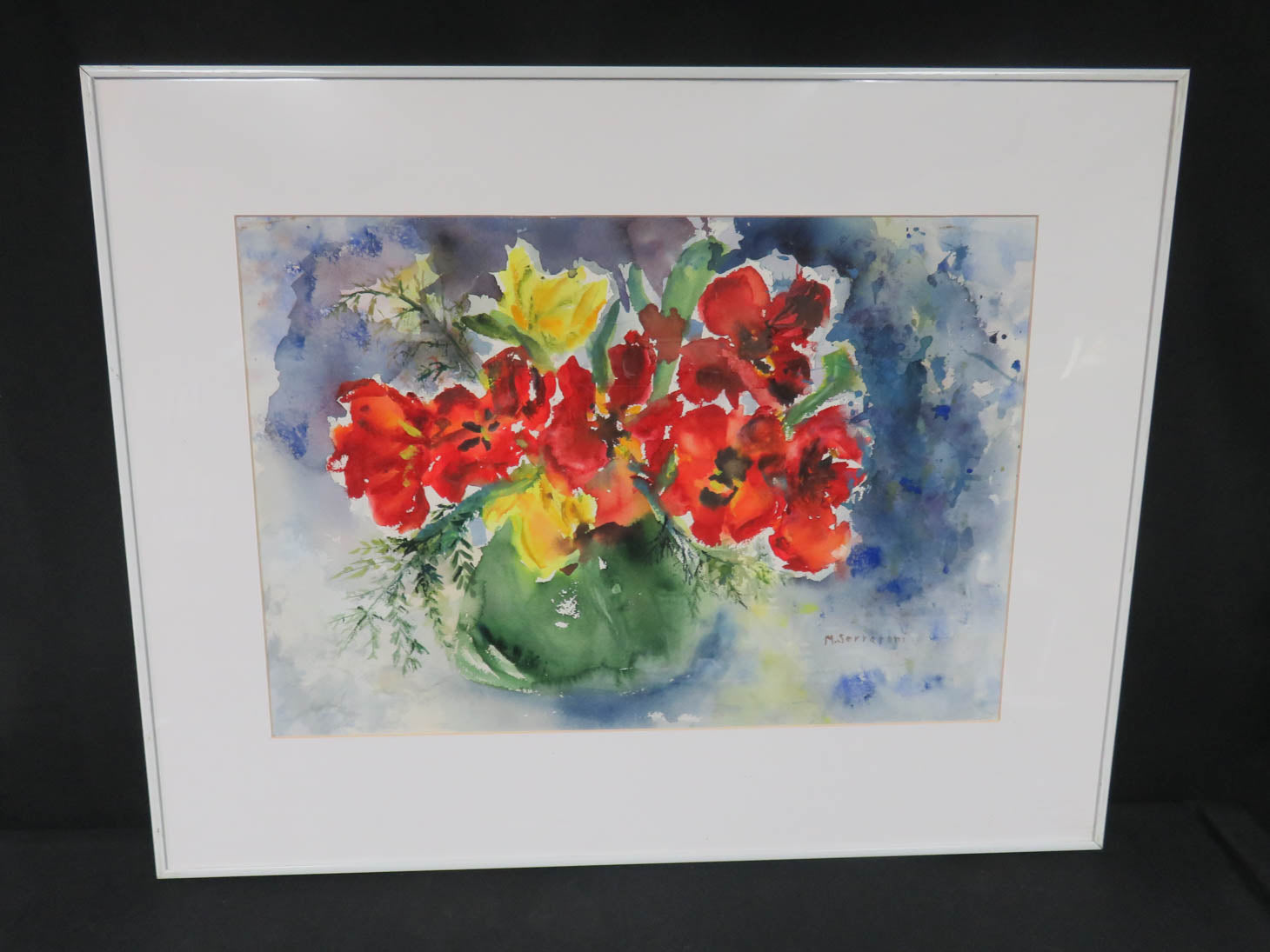 M. Serratoni, vase of flowers, frame and plexiglass.