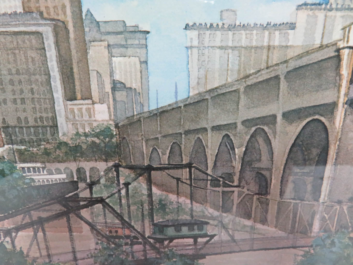 Item Number: 22711-82 B. Reed 57/100. Cleveland. Cityscape in wood frame with white mat. 21.5" x 18.75"