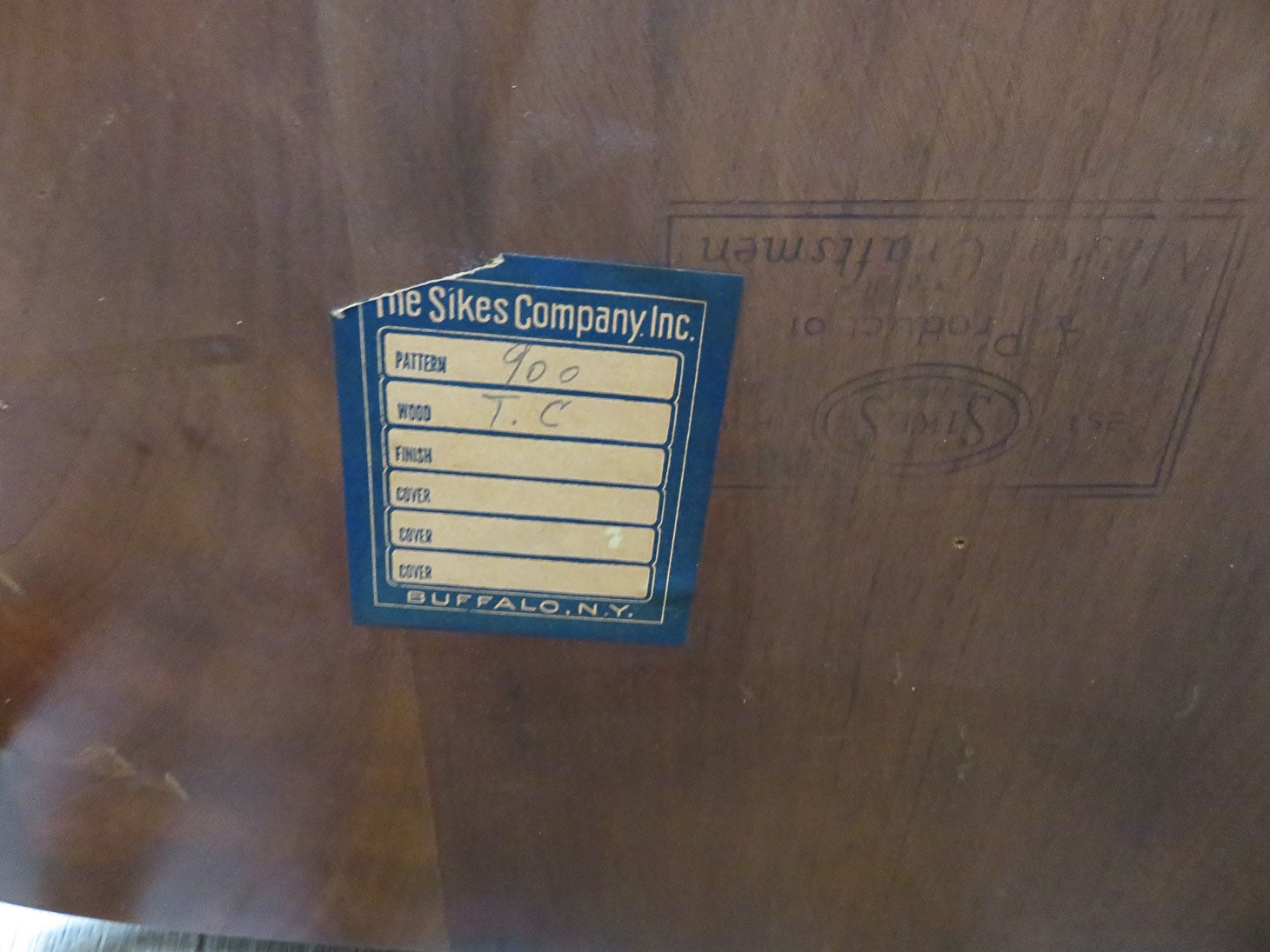 Sikes Co. of Buffalo NY., A medium stained wood with removable cushion.