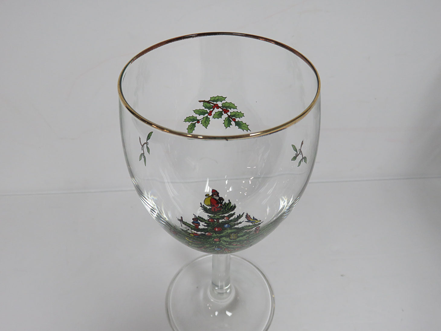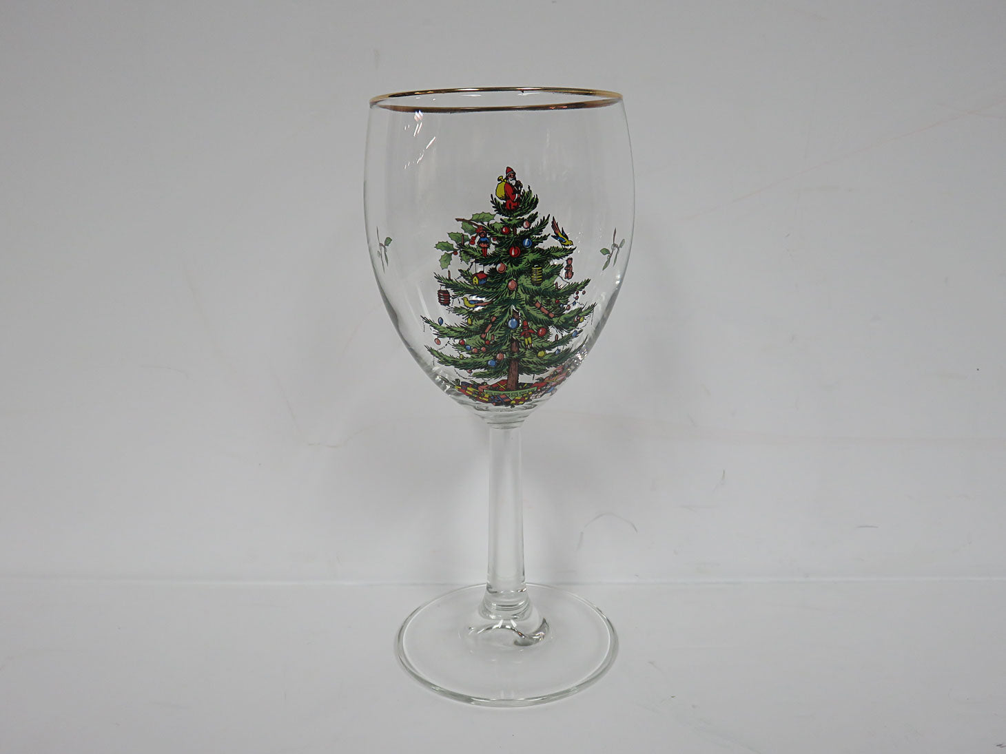 Item Number: 23770-44 Set of 4 "Christmas Tree" wine glasses, clear with Christmas Tree and gold rim 7.25" H