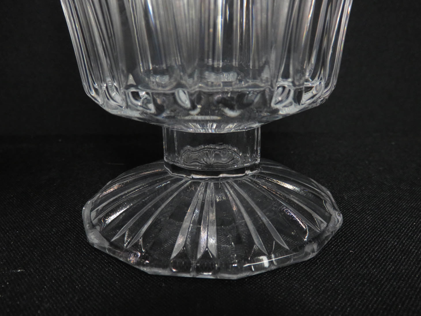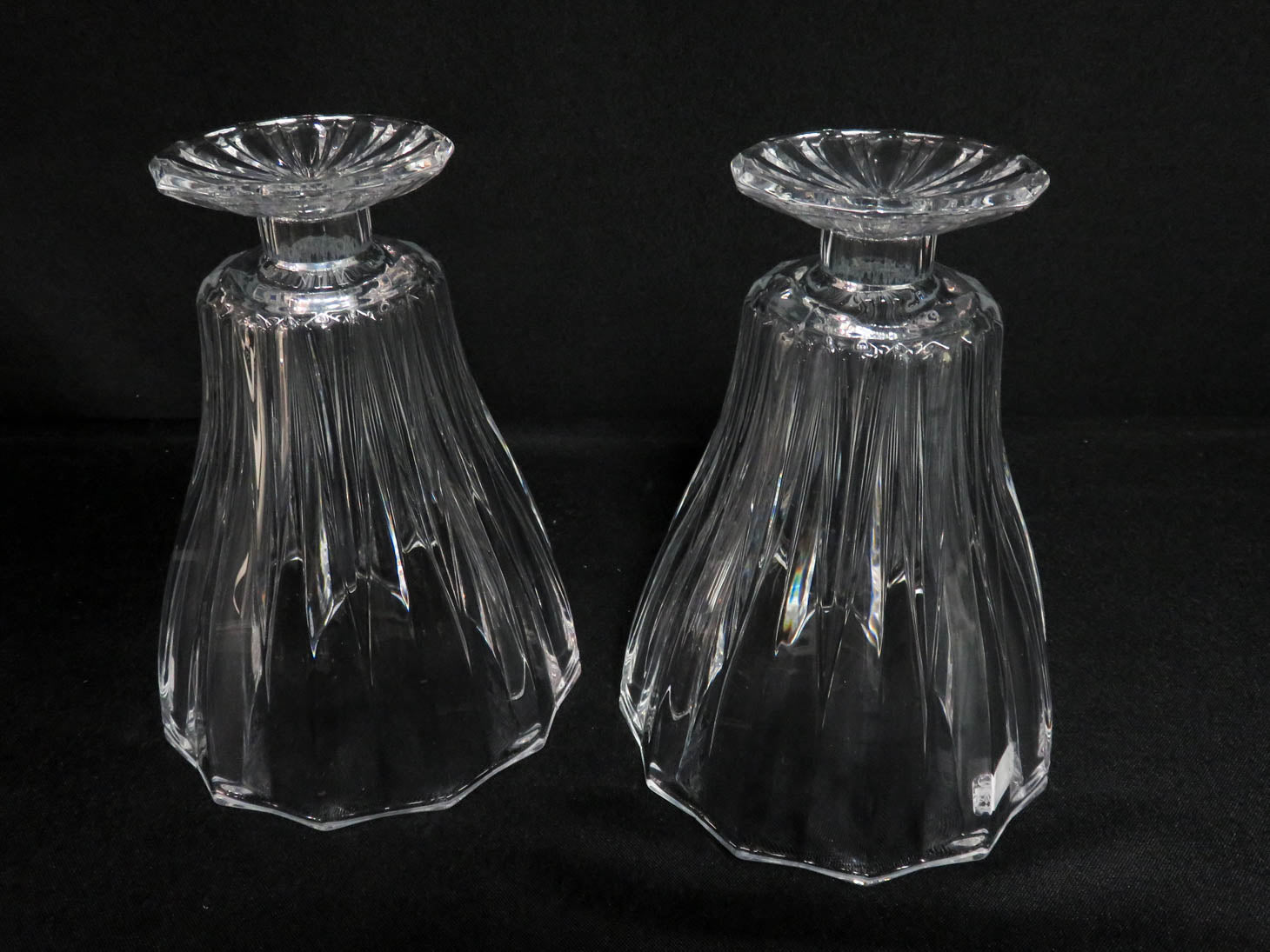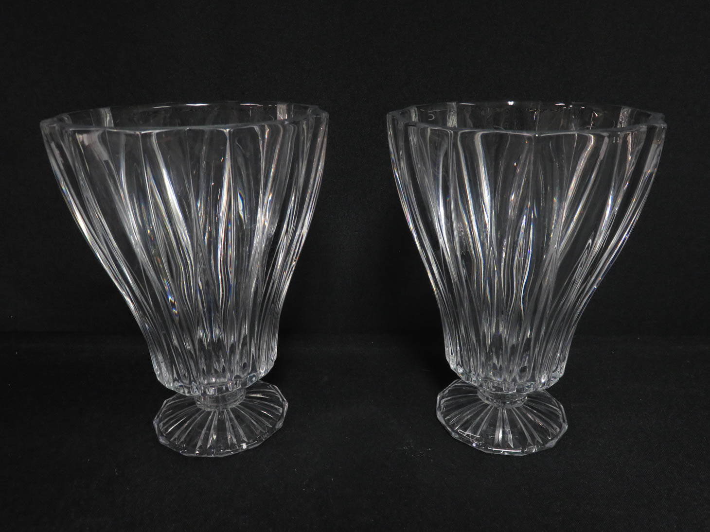 Item Number: 29590-9 Pair of footed hurricanes with vertical ribbed design for tapers or slender pillar candles. 5" x 7" H