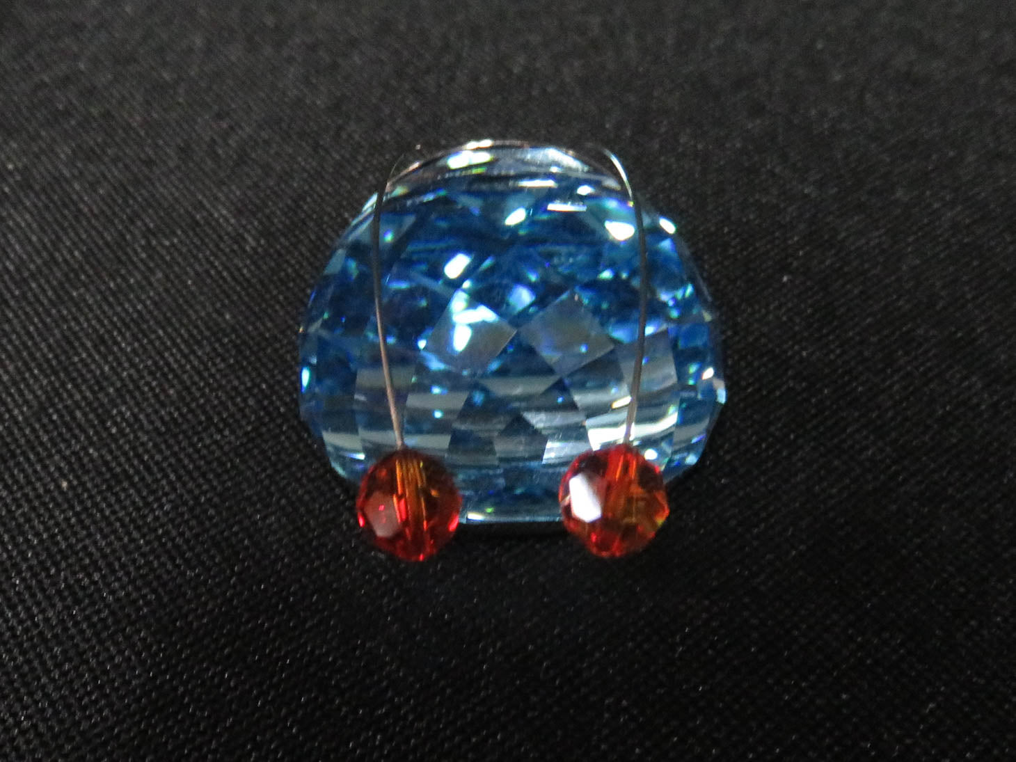 "Cardholder Data Bug" blue crystal with metal antennae and red ends