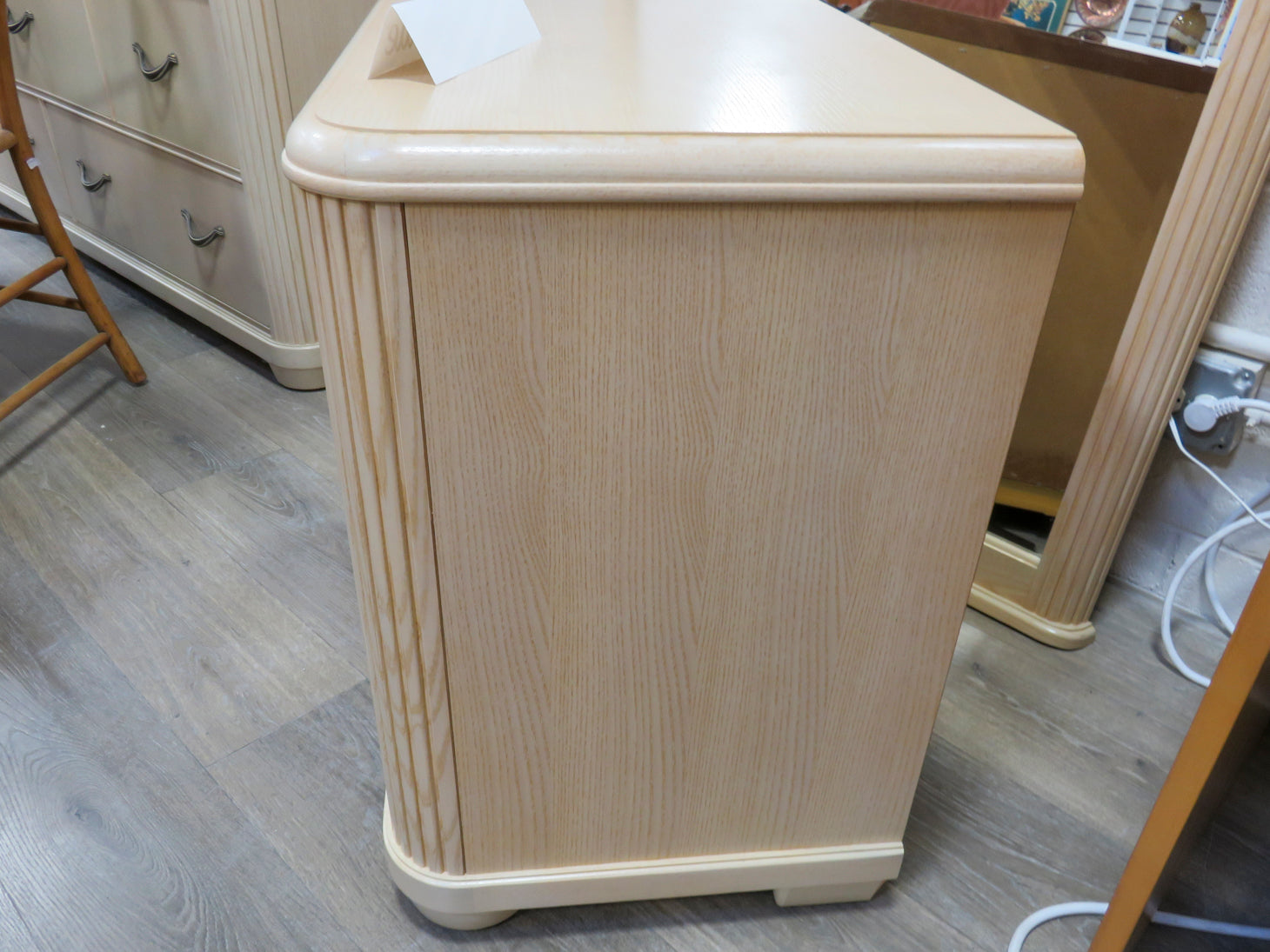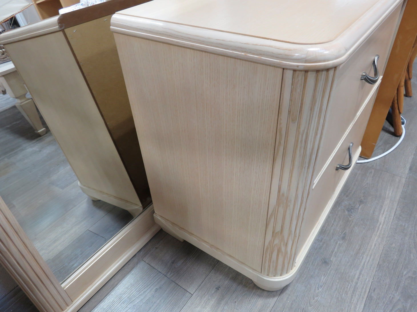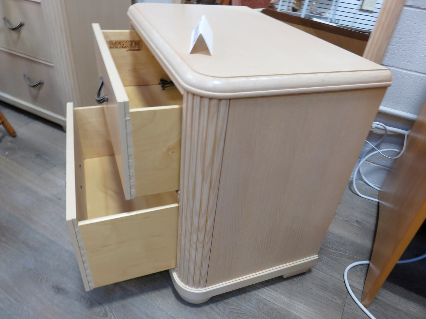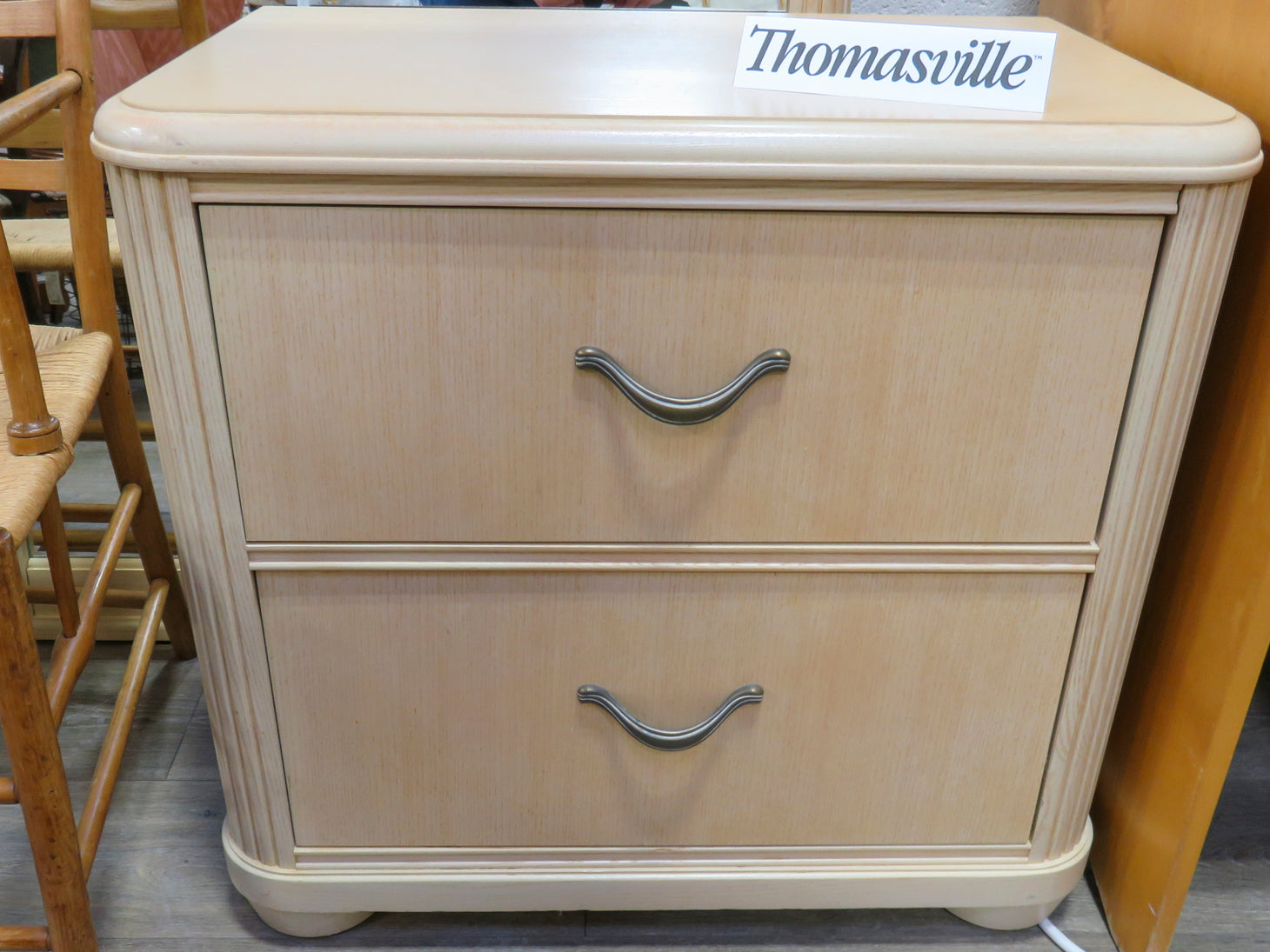 Item Number: 29526-1 Blonde wood, two drawers, with reeded sides and bronze tone hardware. Two available. Sold separately. #29526-2. 28" x 17" x 26"