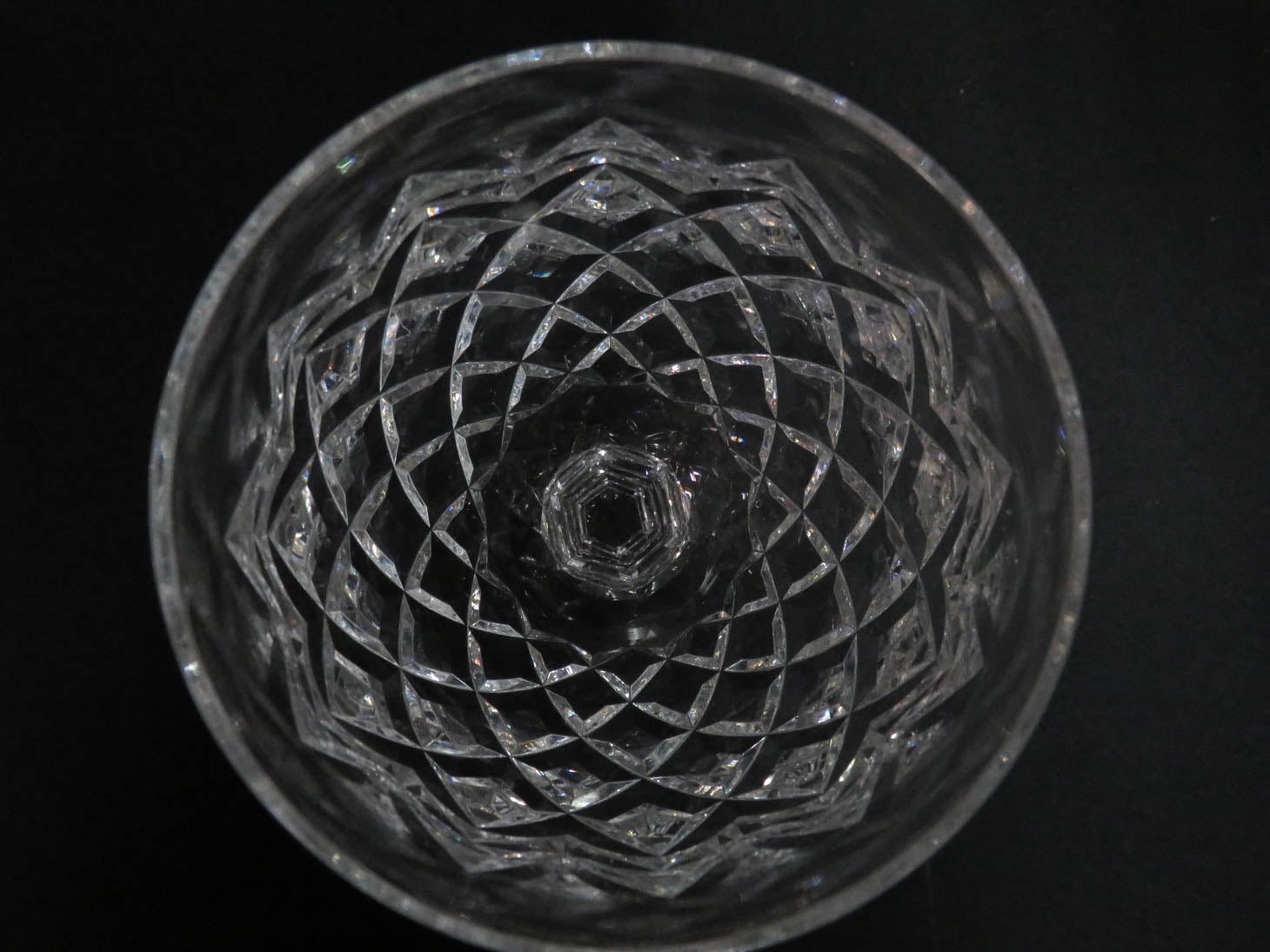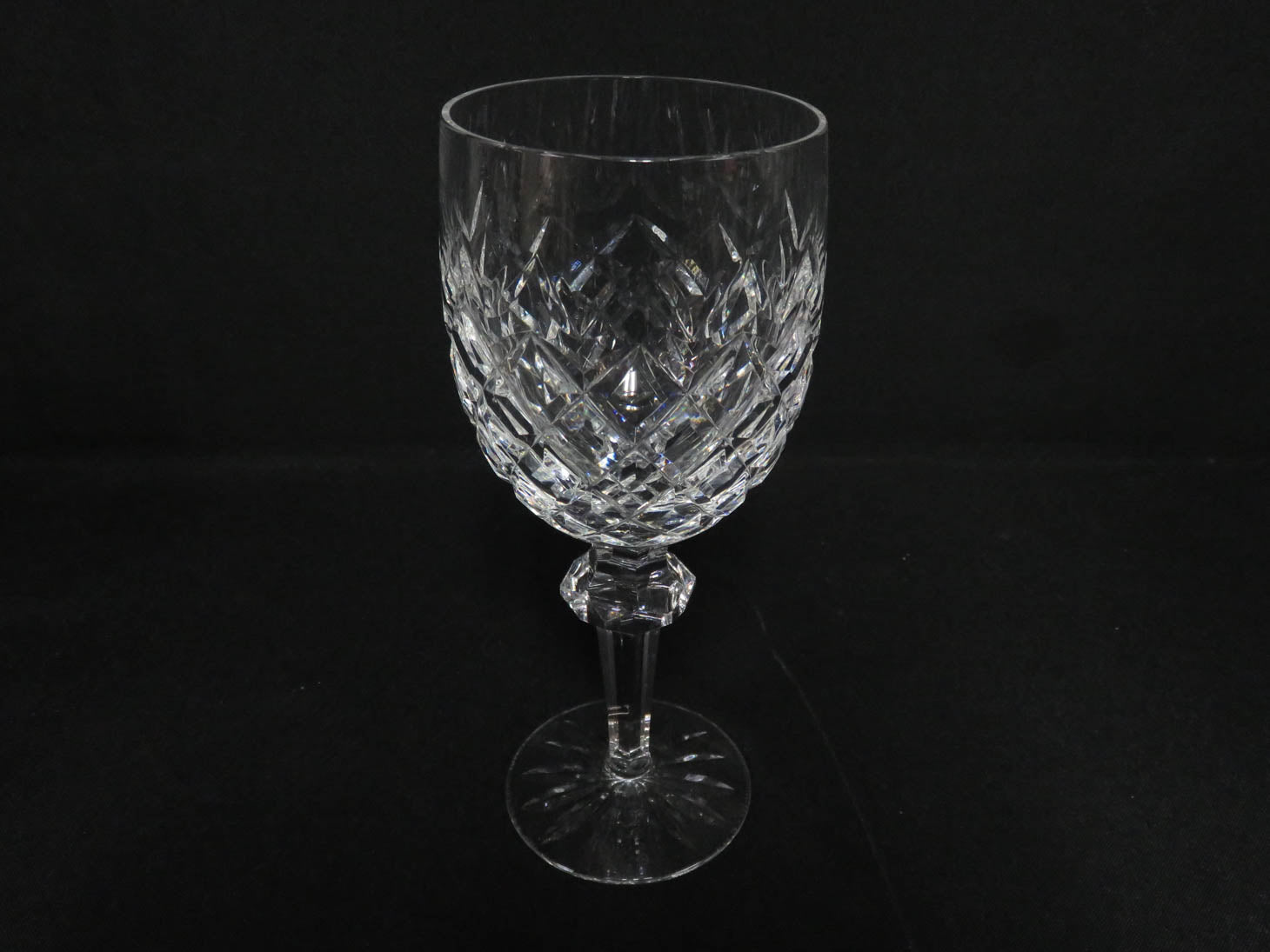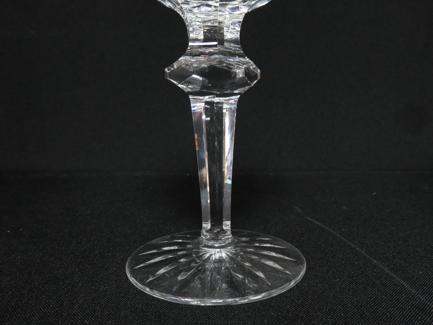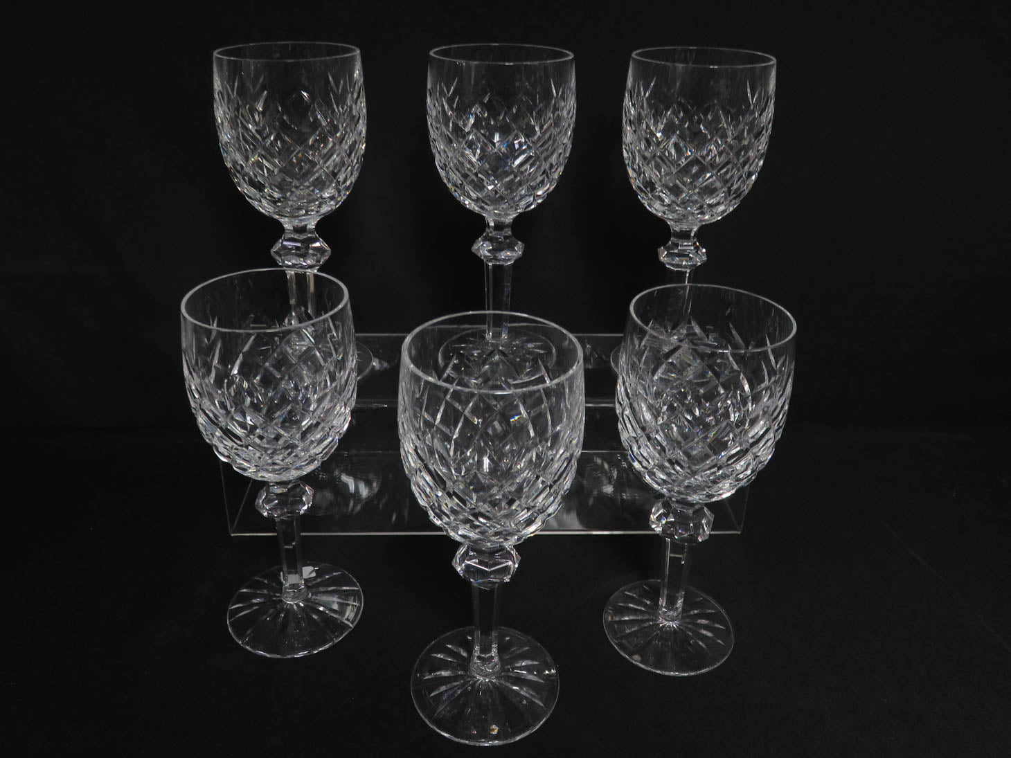 Set of 6, "Powerscourt" diamond pattern, faceted stem and knop, starburst base